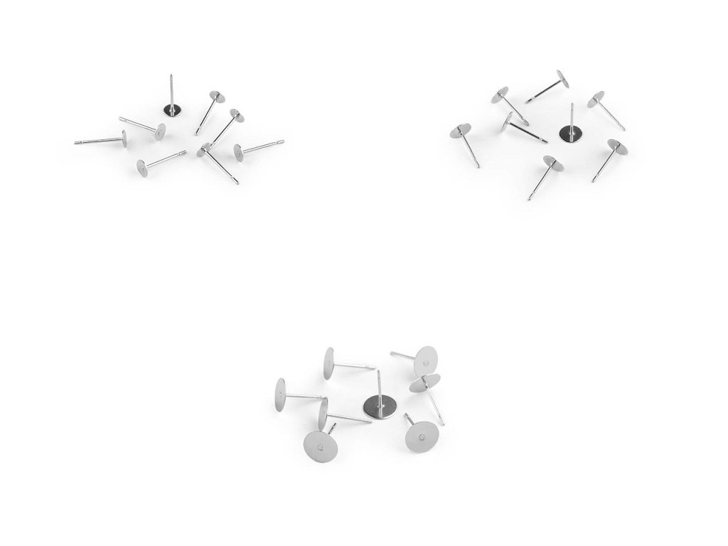 Náušnicové puzety z kvalitní nerezové oceli mají plošku, která slouží k nalepení kabošonu, perly, půlperle či plochého korálku. Využít můžete i drobné textilní květy, mašličky, fimo, růžičky a jiné ozdoby. Tyto puzety jsou perfektním řešením pro výrobu vlastních náušnic, jsou vhodné pro amatérské i profesionální šperkaře, poskytují flexibilitu a jednoduchost při designování.