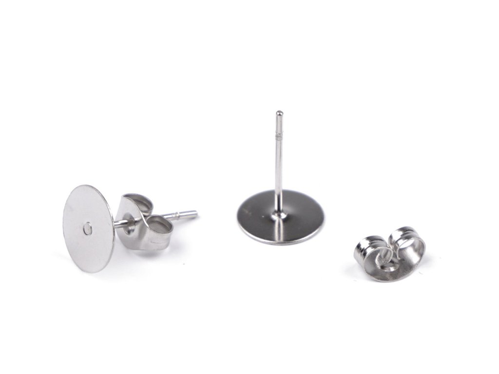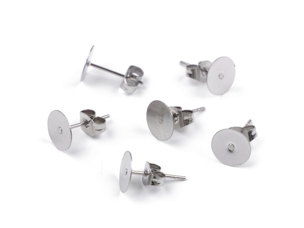 Náušnicové puzety s plochou ploškou, jsou vyrobené z kvalitní nerezové oceli. Ploška slouží k nalepení kabošonu, perly, půlperly či plochého korálku. Využít můžete i drobné textilní květy, mašličky, fimo, růžičky a jiné ozdoby.
