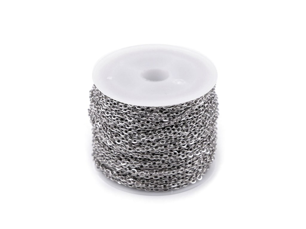 Řetízek z nerezové oceli z plochých oček je základním komponentem pro tvorbu bižuterie. Je pevný, velice kvalitní. Pomocí spojovacího kroužku na něj můžete připojit zapínání.