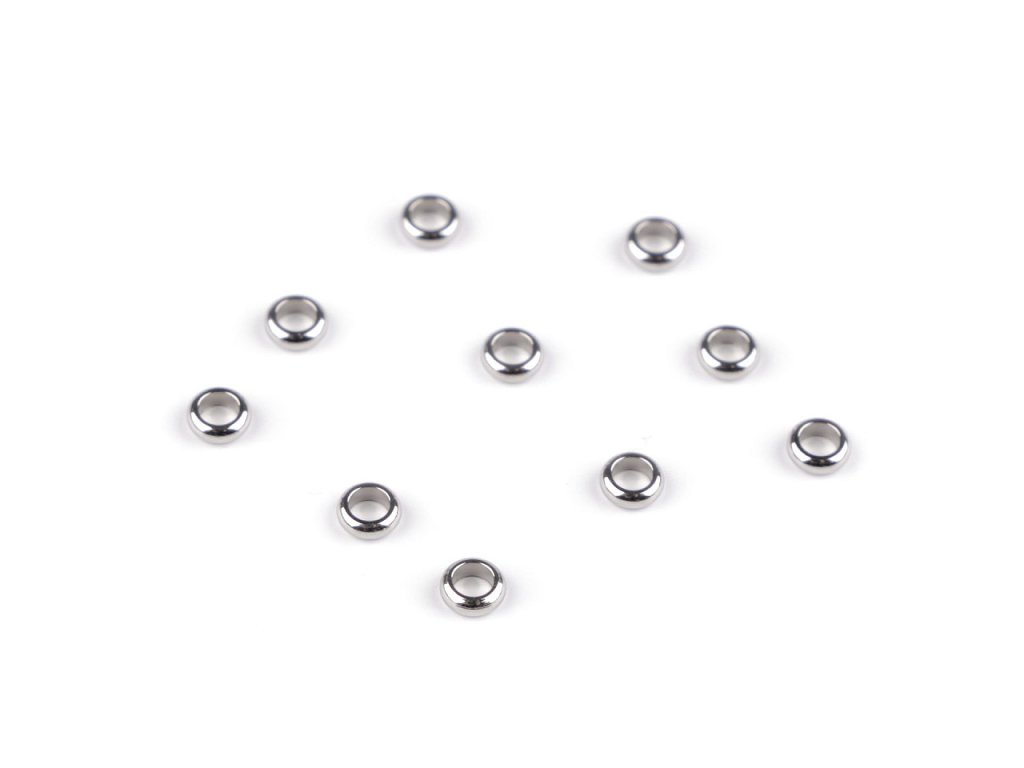 Malý kovový korálek má tvar rondelky, je vyrobený z kvalitní nerezové oceli. Využijete jej především na výrobu náramků, kterým dodá na eleganci. Použvá se jako ozdobný oddělující díl mezi další korálky. Díky velkému průvleku je možné rondelky snadno kombinovat s různými typy šňůrek a řetízků, což umožňuje vytvářet osobité kousky přesně podle vašich představ.