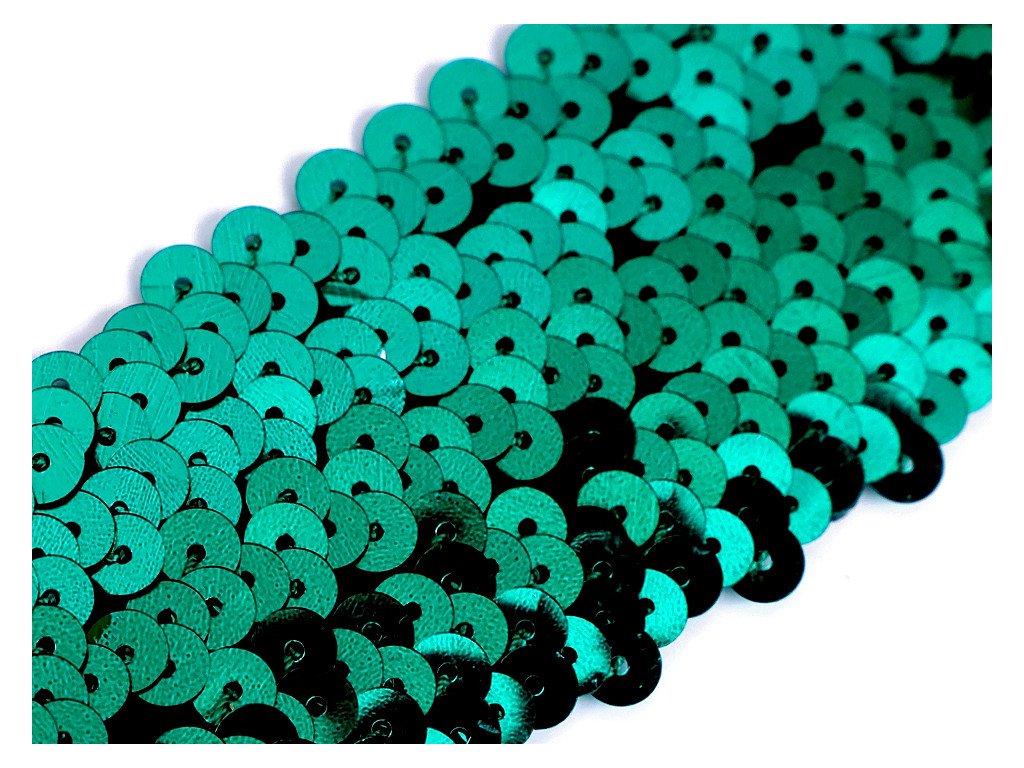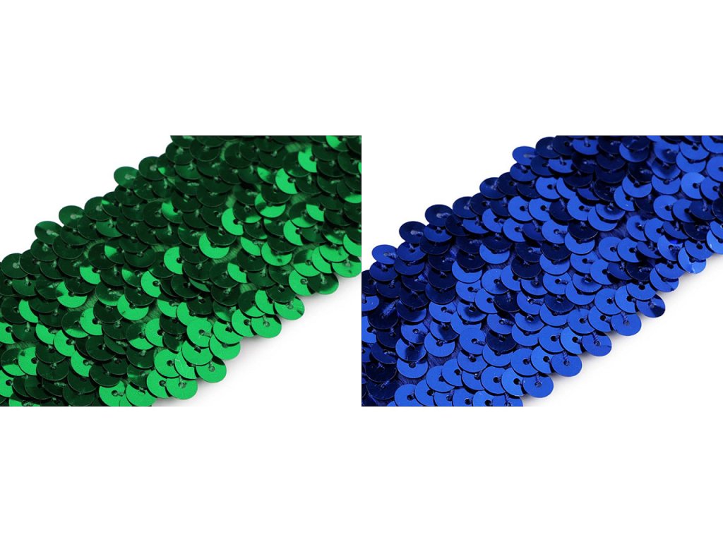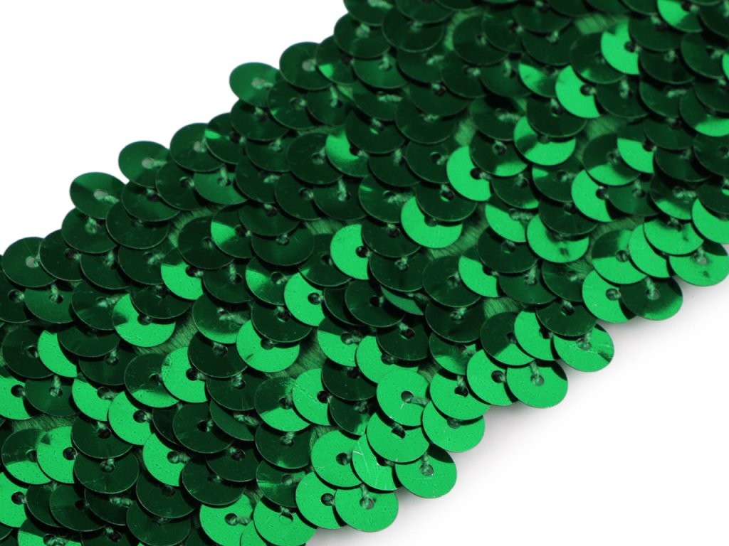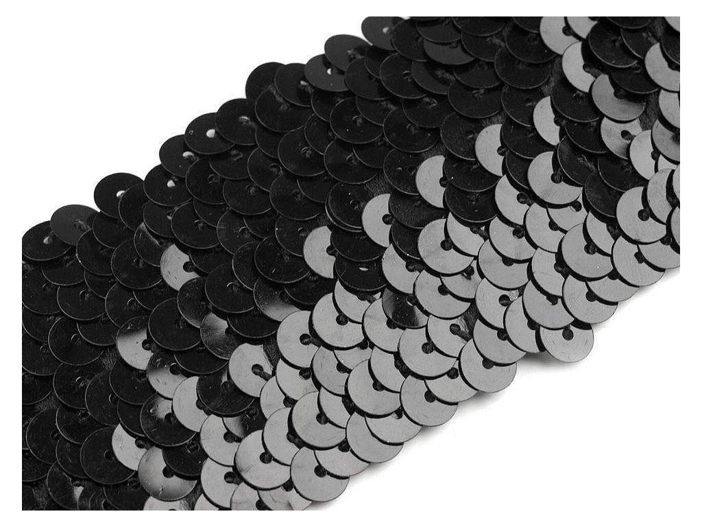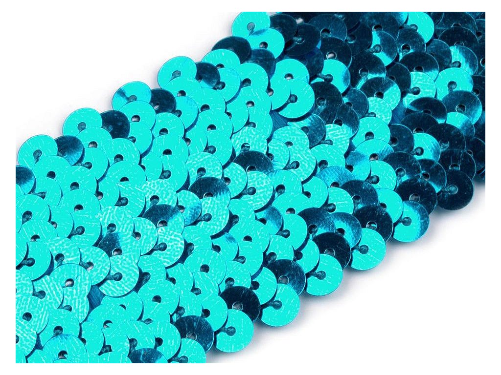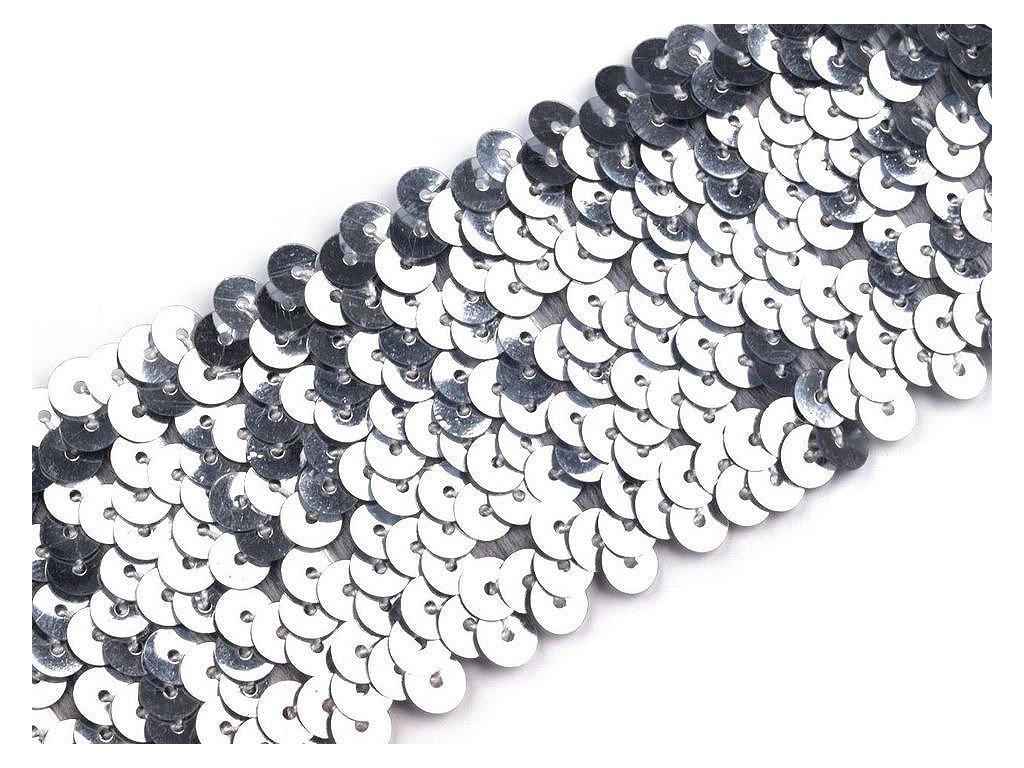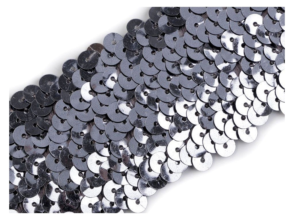 Prýmek zdobí našité hologramové flitry. Díky gumě ve spodní části je elastický.
