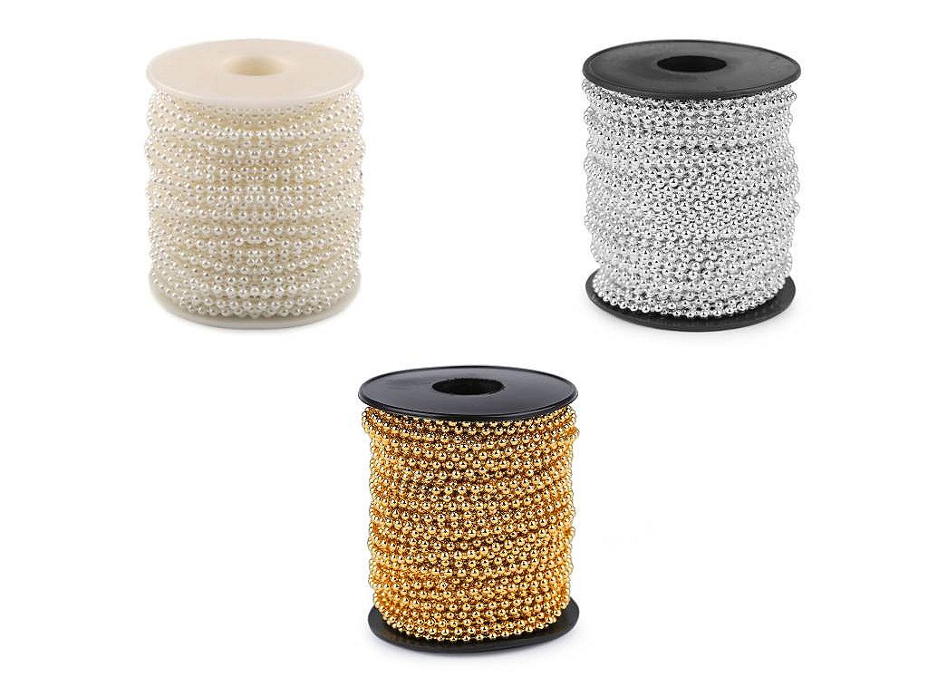 Plastové korálky na šňůře vyniknou jako vánoční řetěz na stromku, věnci i na sváteční tabuli. Můžete je naaranžovat také do květinových vazeb nebo s nimi zajímavě ozdobit dárky. Jsou vhodné i na svatební aranžmá.