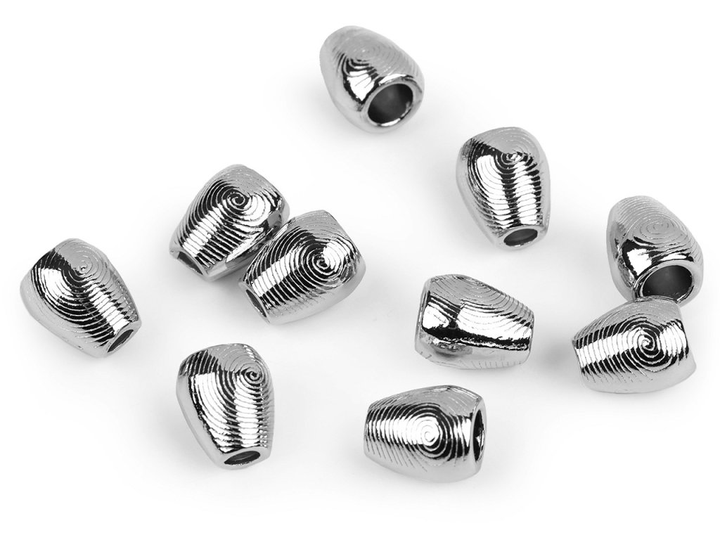 Kovová koncovka je na povrchu ozdobená jemným reliéfem. Využijete ji k zakončení šňůrek, které lemují kapuce nebo spodní lem mikin, bund, kabátků, pasu šatů apod. Zabraňuje vytažení šňůry z tunýlku.