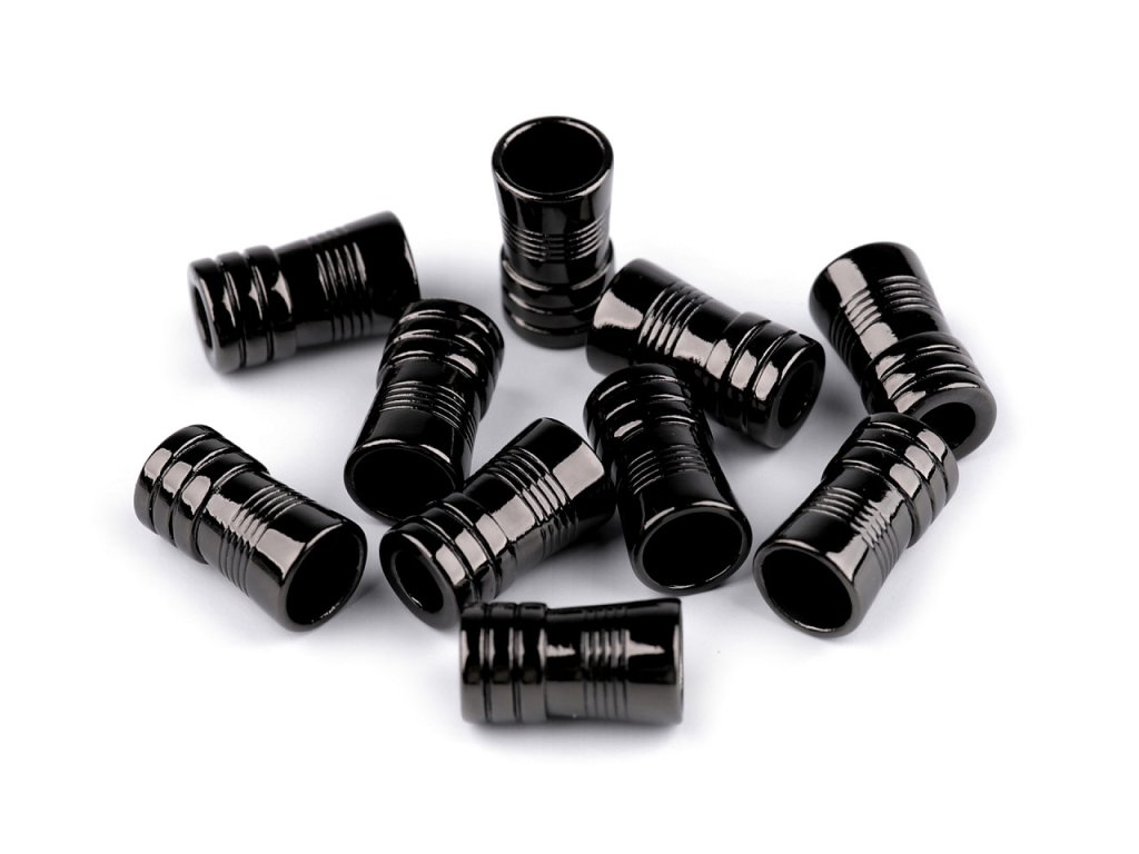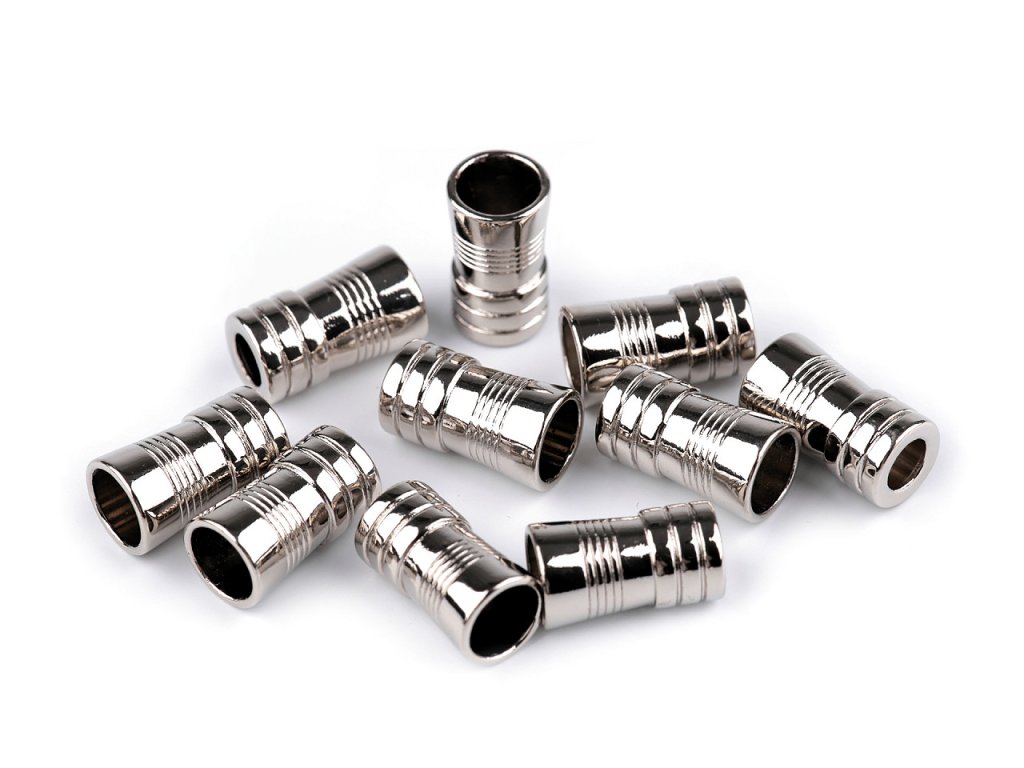 Kovová koncovka s malými vroubky ozdobí šňůrky na mikině, bundě, kabátku i plavkách. Je vhodná také na kabelky a boty.