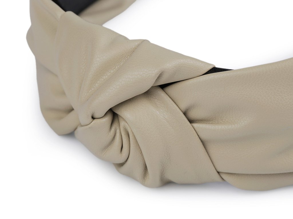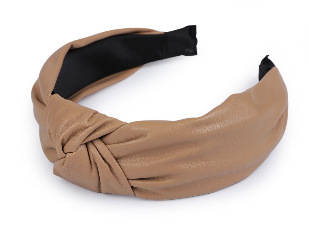 Široká koženková čelenka je uprostřed ozdobená spletením do uzlu. Čelenka je elegantní a stylová, využijete ji na běžné nošení i na párty.