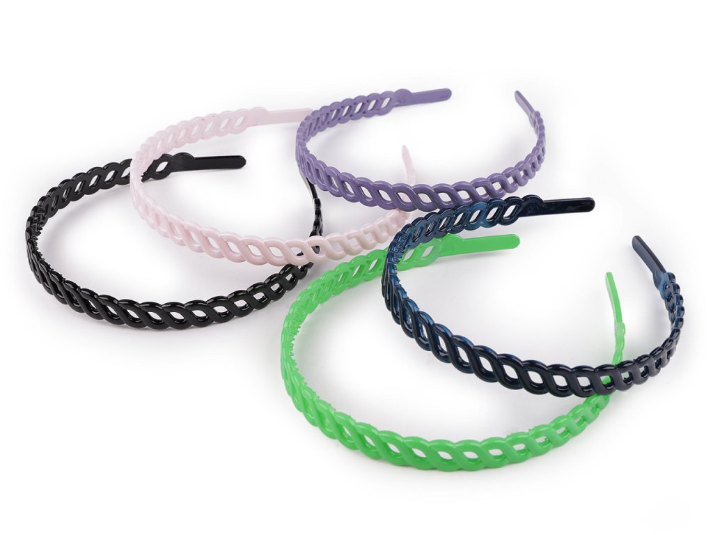 Stylová plastová čelenka má lesklý a hladký povrch. Je vyrobená z kvalitního plastu, velmi dobře drží ve vlasech díky mini zoubkům na vnitřní straně čelenky.