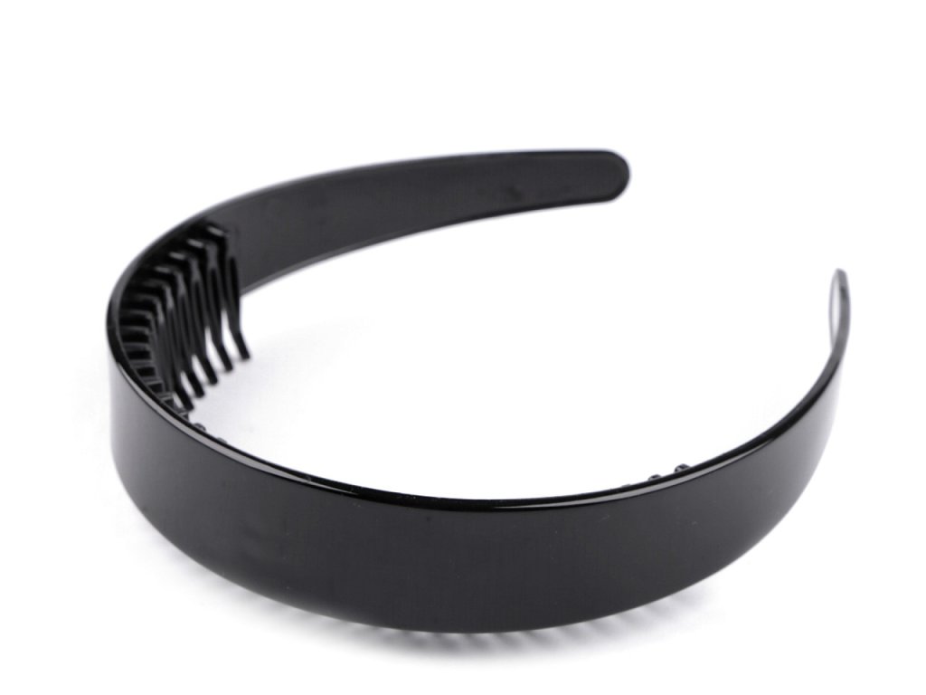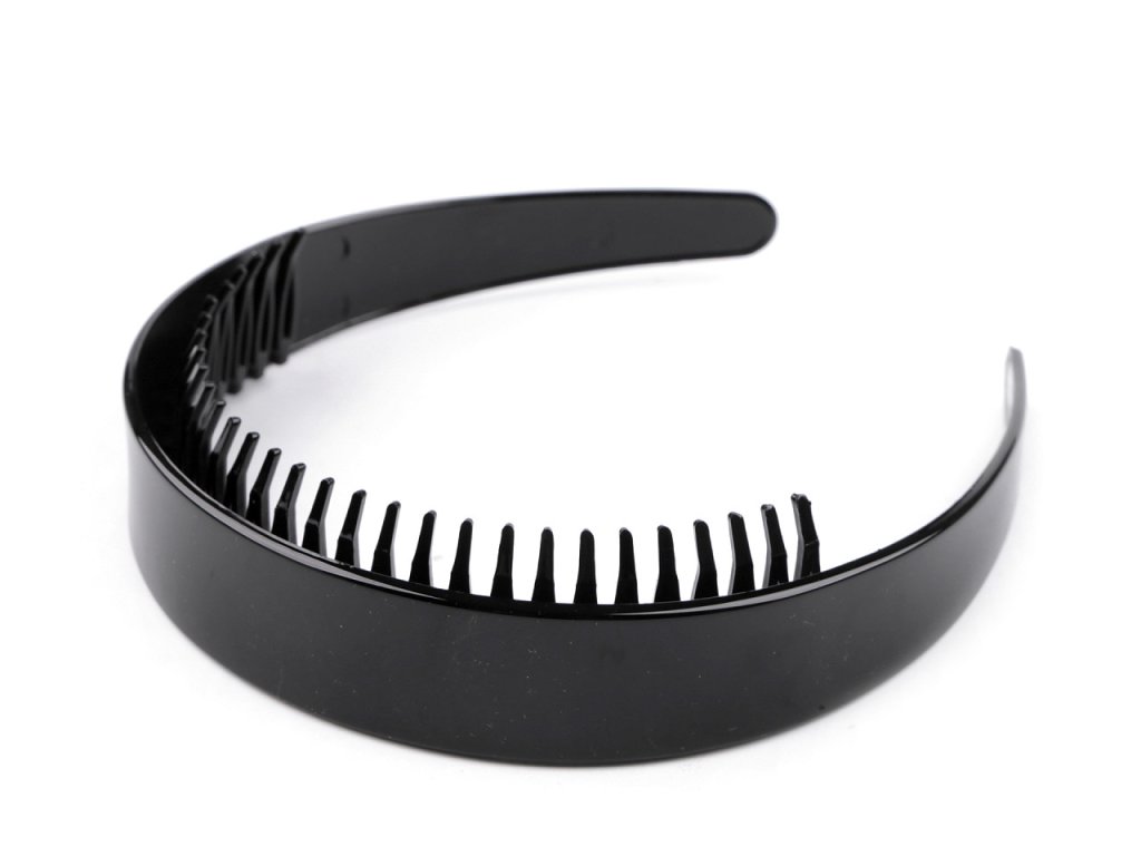 Široká plastová čelenka s hřebínkem má lesklý a hladký povrch. Velice příjemně se nosí, díky hřebínku s dlouhými zuby perfektně drží.