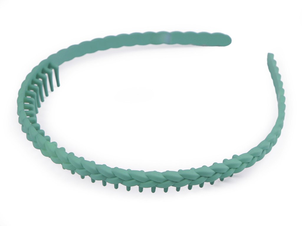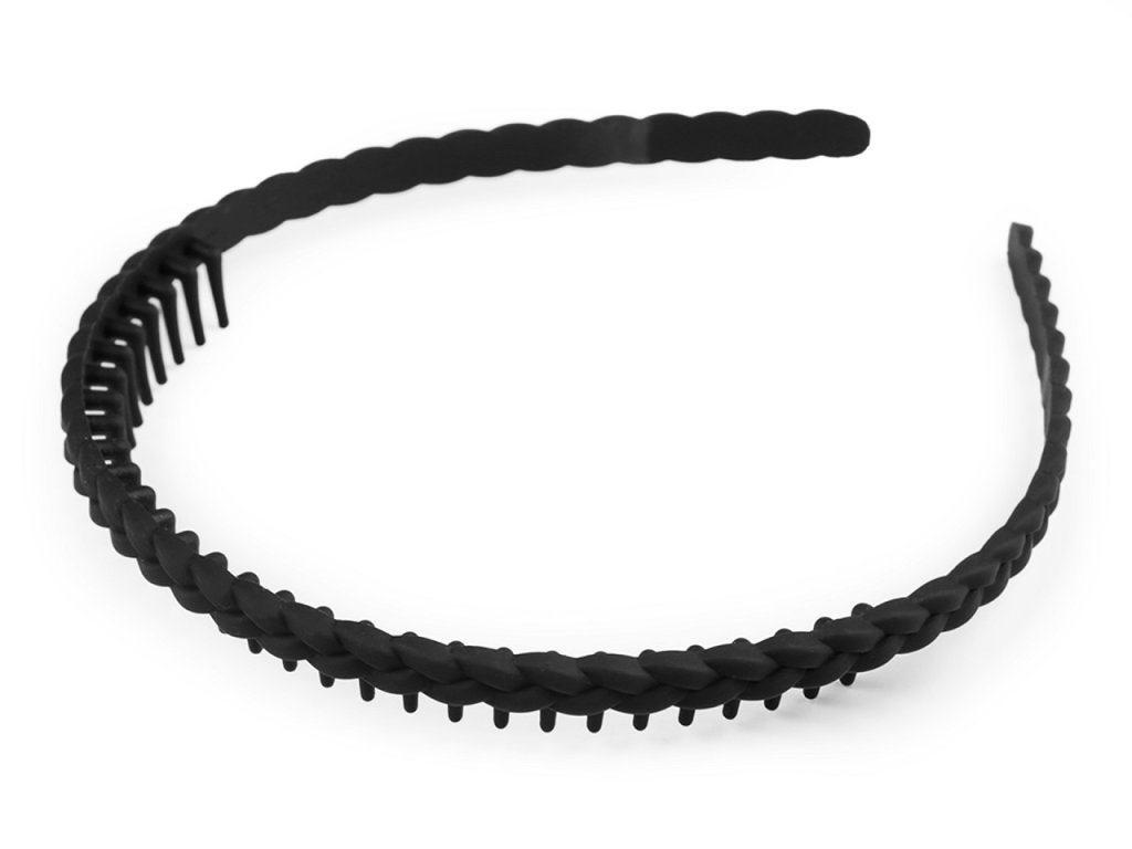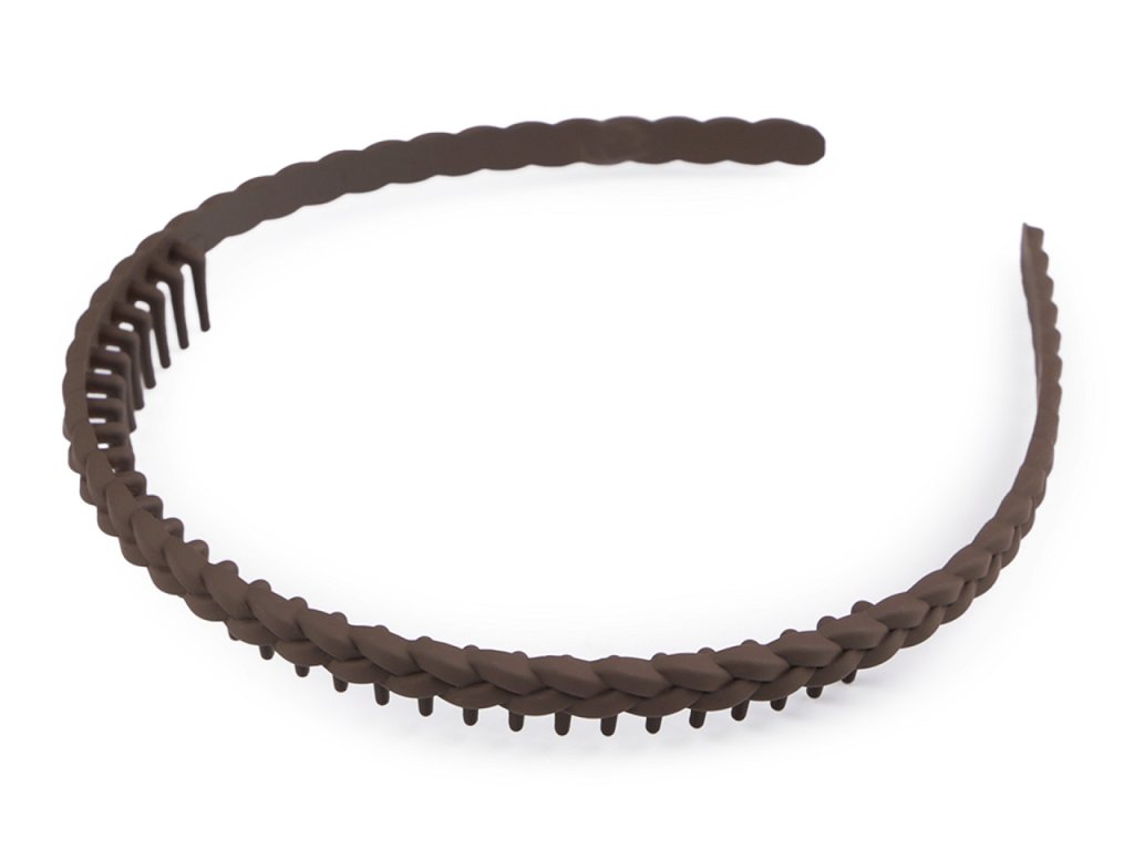 Plastová čelenka s hřebínkem má design spleteného copánku. Hodí se pro dospělé i děti. Její povrch je matný. Čelenka se velice příjemně nosí, díky hřebínku se středně dlouhými zuby výborně drží.
