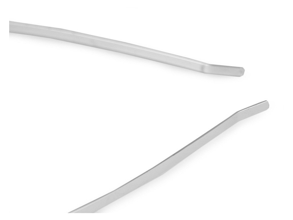 Na kovovém základu širokém 3 mm jsou pevně připevněná kovová lůžka se vsazenými skleněnými broušenými kamínky.