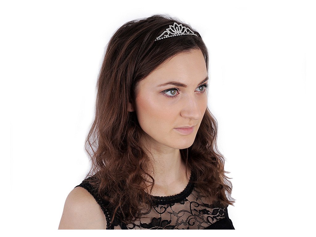 Nepřehlédnutelná štrasová čelenka je v přední části ozdobená broušenými kamínky. Díky oslnivému lesku kamínků je elegantní a působí velice luxusně. Je skvělou ozdobou na ples, svatbu, do divadla nebo na večírky. Pokud pořádáte soutěž krásy, pak je tato čelenka ideálním doplňkem k ozdobení vítězek.