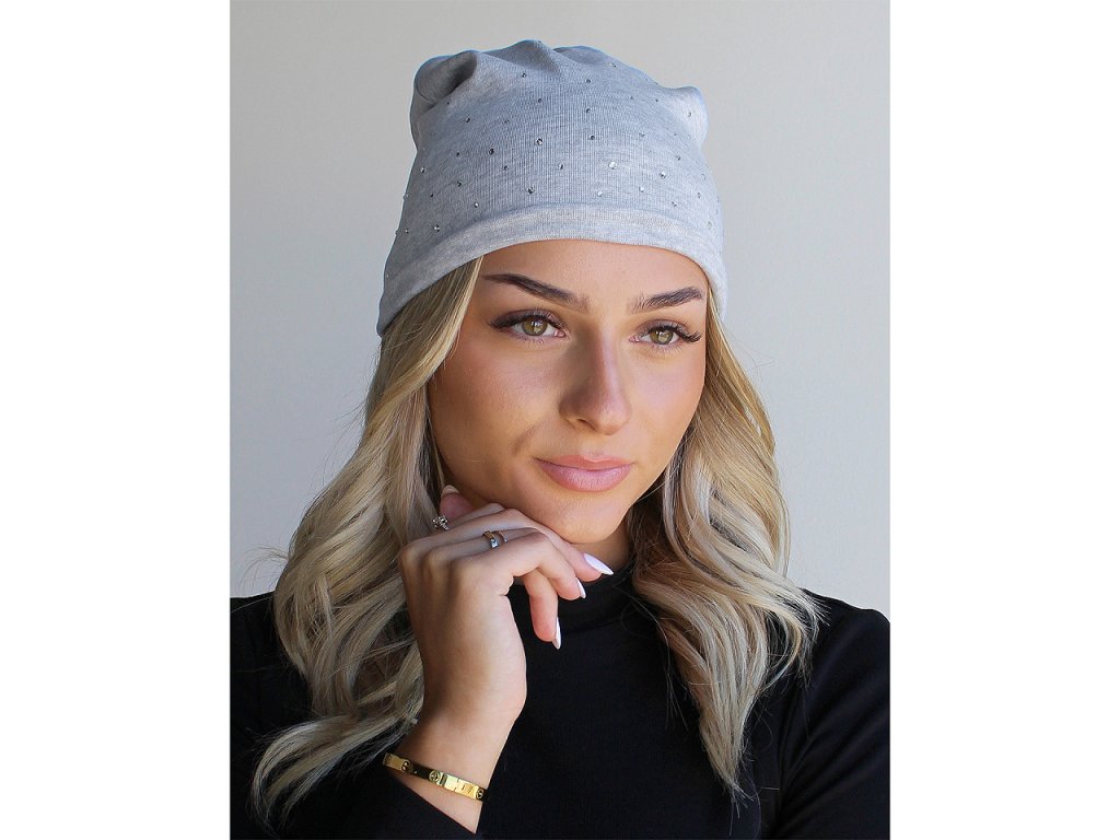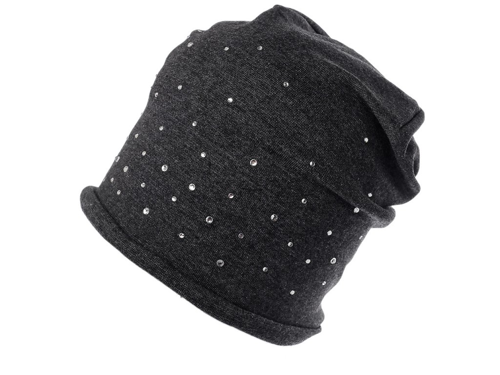Bavlněná čepice z pružného úpletu je ideální do města, hodí se i na procházky a sportovní aktivity. Na přední straně je ozdobená broušenými kamínky, díky kterým se poutavě třpytí. Má mladistvý ležérní střih se spuštěným zadním koncem.. Snadno se kombinuje s různými outfity, hodí se do chladného podzimního počasí.