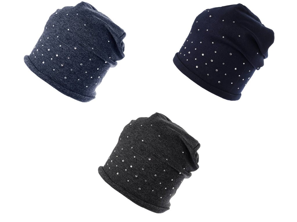 Bavlněná čepice z pružného úpletu je ideální do města, hodí se i na procházky a sportovní aktivity. Na přední straně je ozdobená broušenými kamínky, díky kterým se poutavě třpytí. Má mladistvý ležérní střih se spuštěným zadním koncem.. Snadno se kombinuje s různými outfity, hodí se do chladného podzimního počasí.