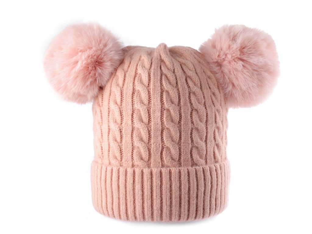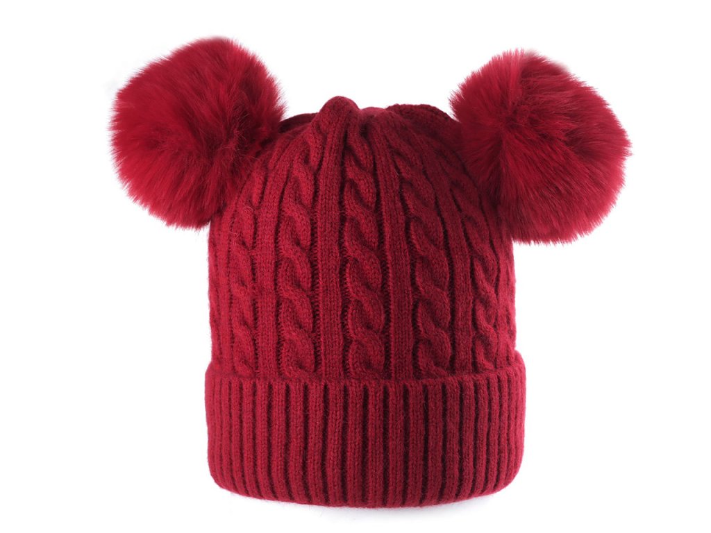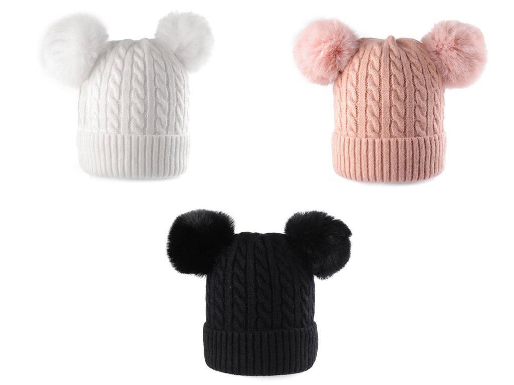 Dívčí zimní čepice s velkými bambulemi připomíná roztomilé zvířátko s oušky. Má ohrnutý okraj, díky kterému dobře drží. Bude hřát celou zimu, uvnitř má jemný plyš, jenž je velice příjemný na dotek. Chlupaté bambule imitují pravou kožešinu.