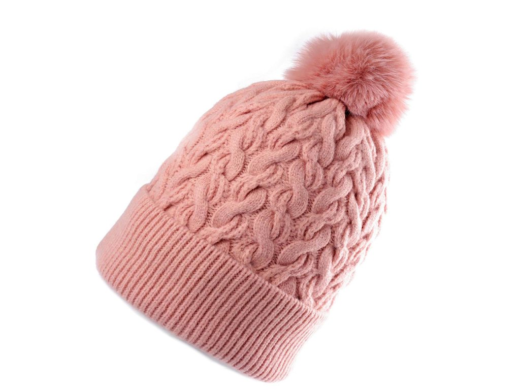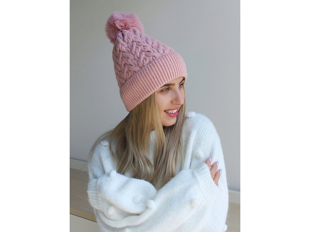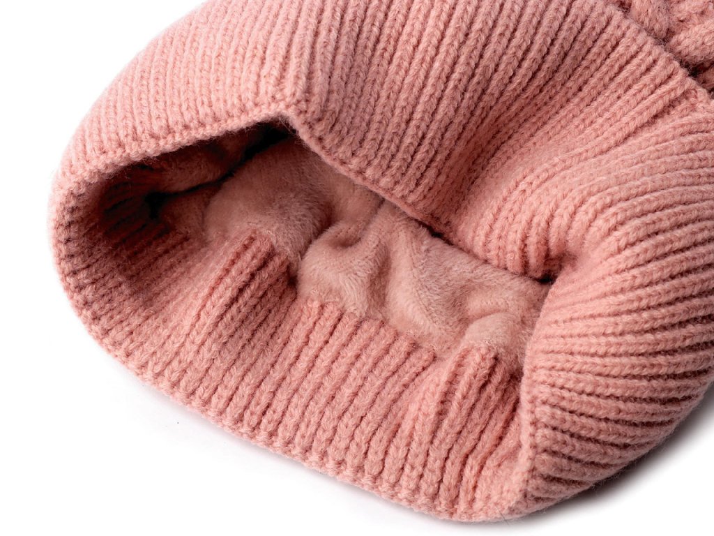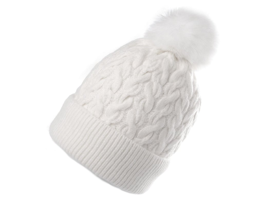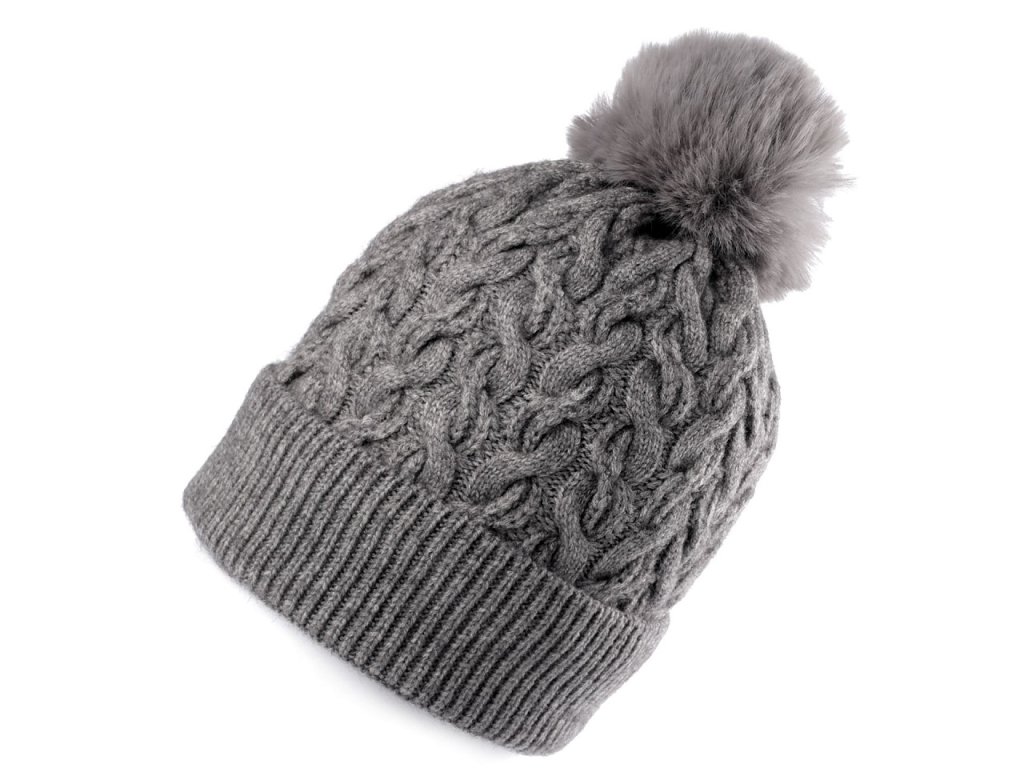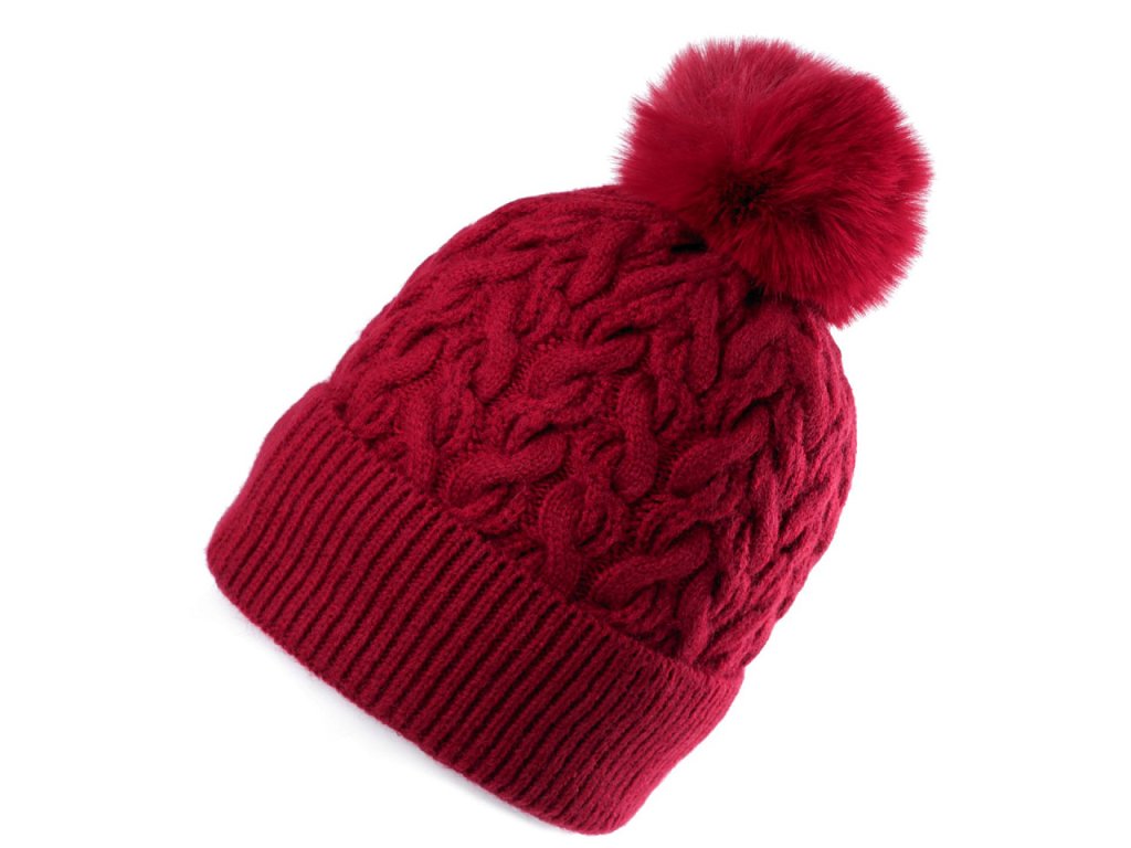 Pletená čepice s bambulí a ohrnutým okrajem má krásný copánkový vzor. Bude vás hřát celou zimu, uvnitř má jemný plyš, jenž je velice příjemný na dotek. Bambule věrně imituje pravou kožešinu.