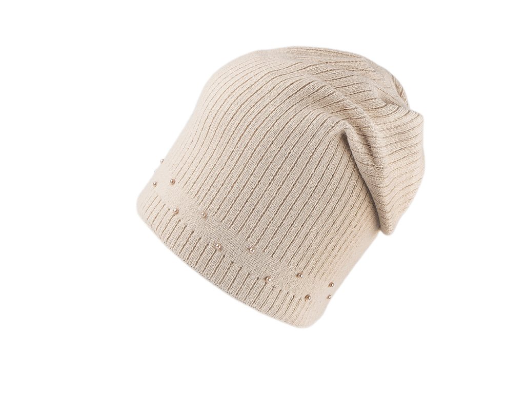 Elegantní řádkovaná čepice s perlami ve stylu Homeless má mladistvý ležérní střih se spuštěným zadním koncem. Konec čepice je přešitý, odpadá její složité aranžování na hlavě. Perly dodávají celkovému vzhledu lesk a styl. Materiálová úprava lamblook dodává čepici příjemnou kašmírovou měkkost a komfort při nošení. Čepice vás bude hřát celou zimu, má lem z dvojité pleteniny, je ideální pro zimní procházky ve městě i pro outdoorové aktivity.