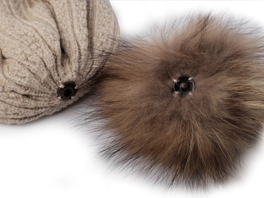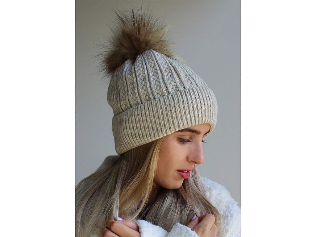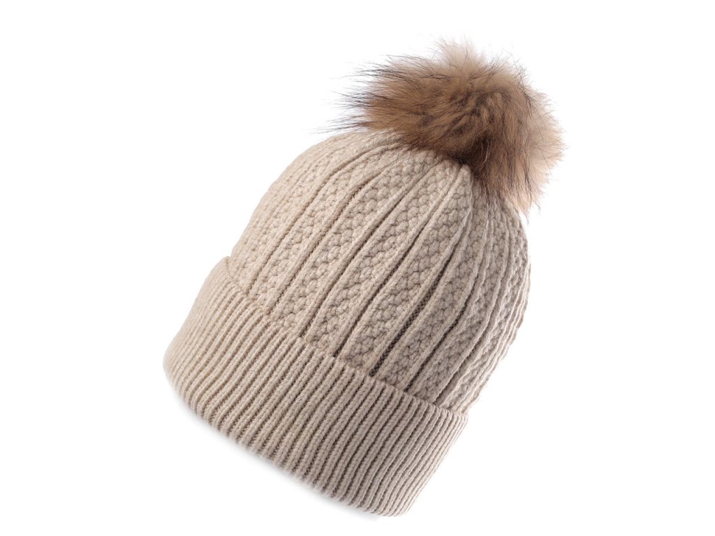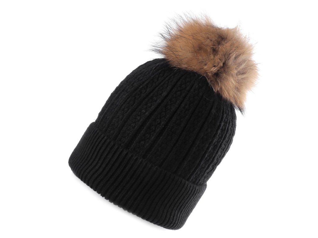 Pletená čepice s velkou kožešinovou bambulí a ohrnutým okrajem má zajímavou strukturu. Bude vás hřát celou zimu, uvnitř má jemný plyš, jenž je velice příjemný na dotek.