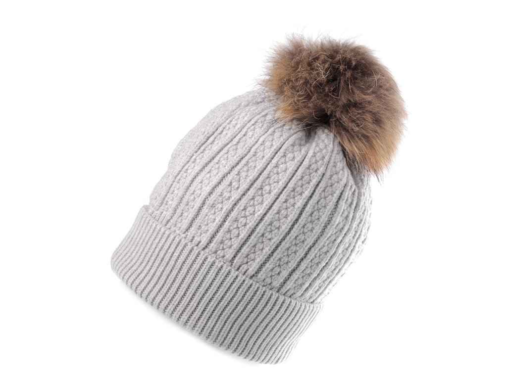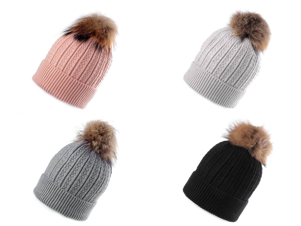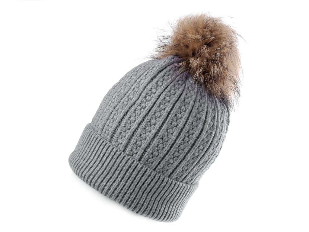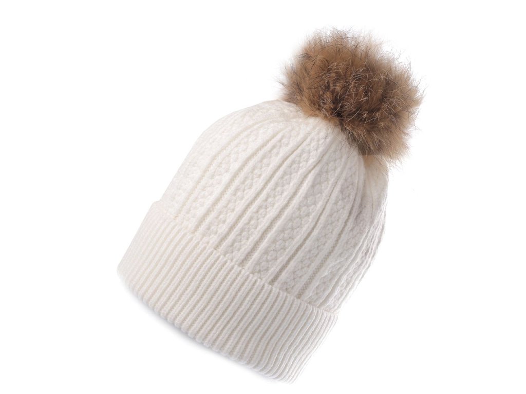 Dámská / dívčí zimní čepice s pravou kožešinovou bambulí Emi Ross
