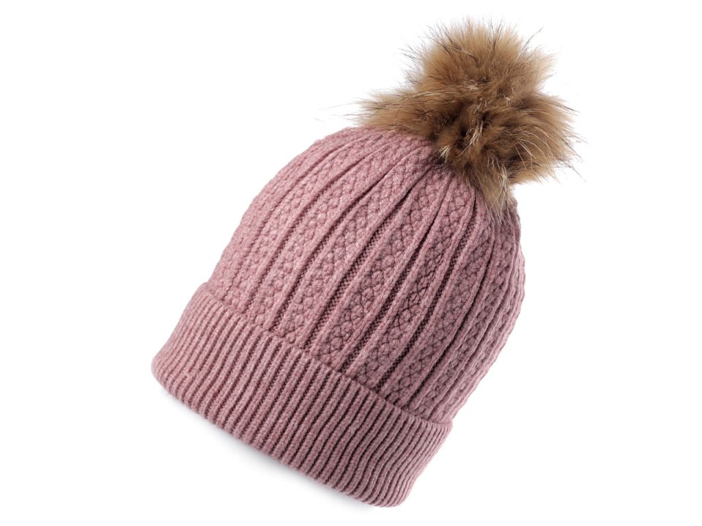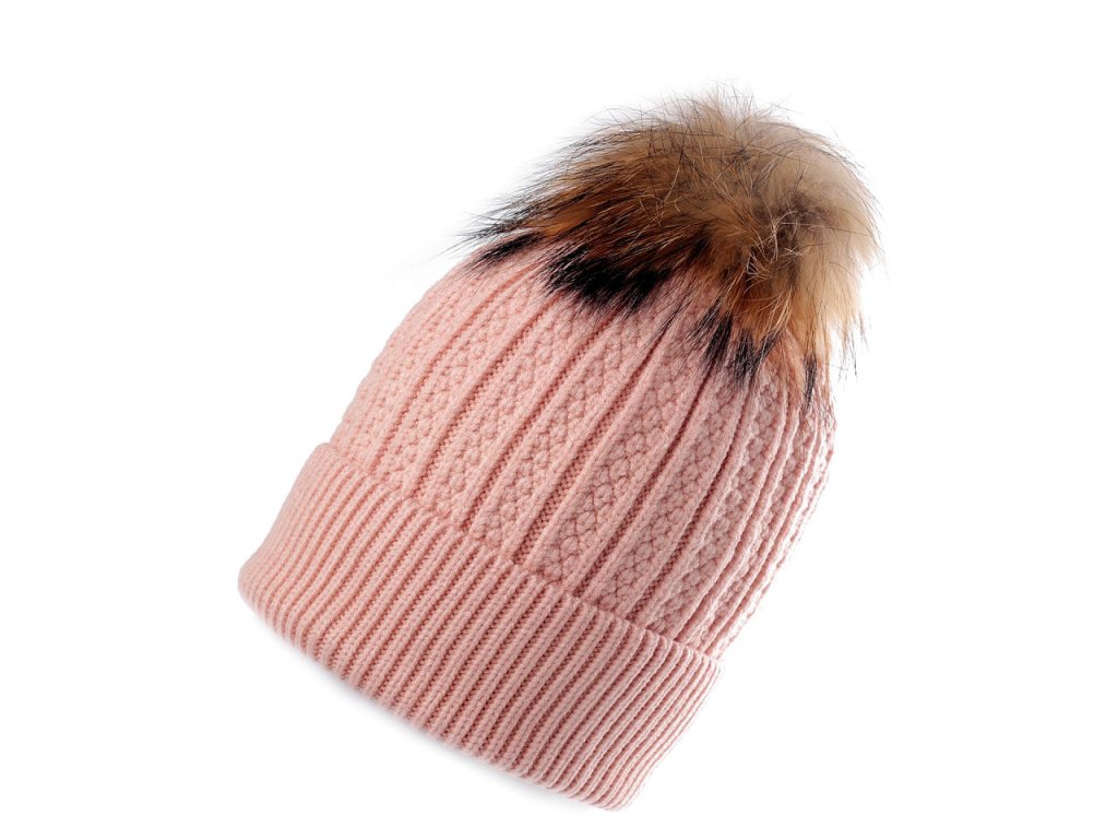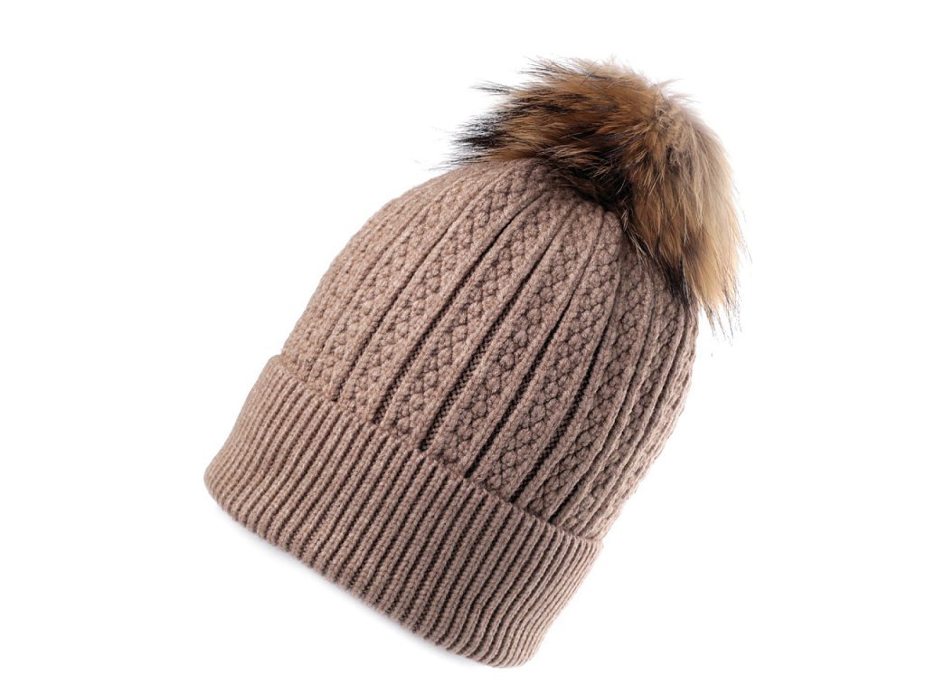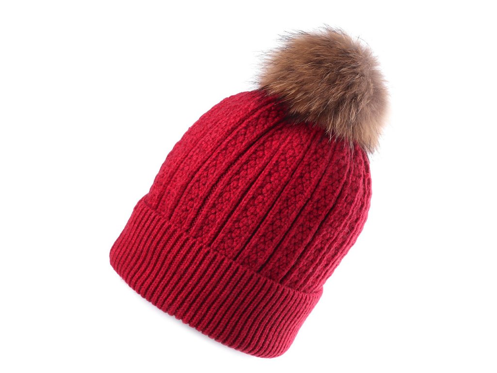 Dámská / dívčí zimní čepice s pravou kožešinovou bambulí Emi Ross