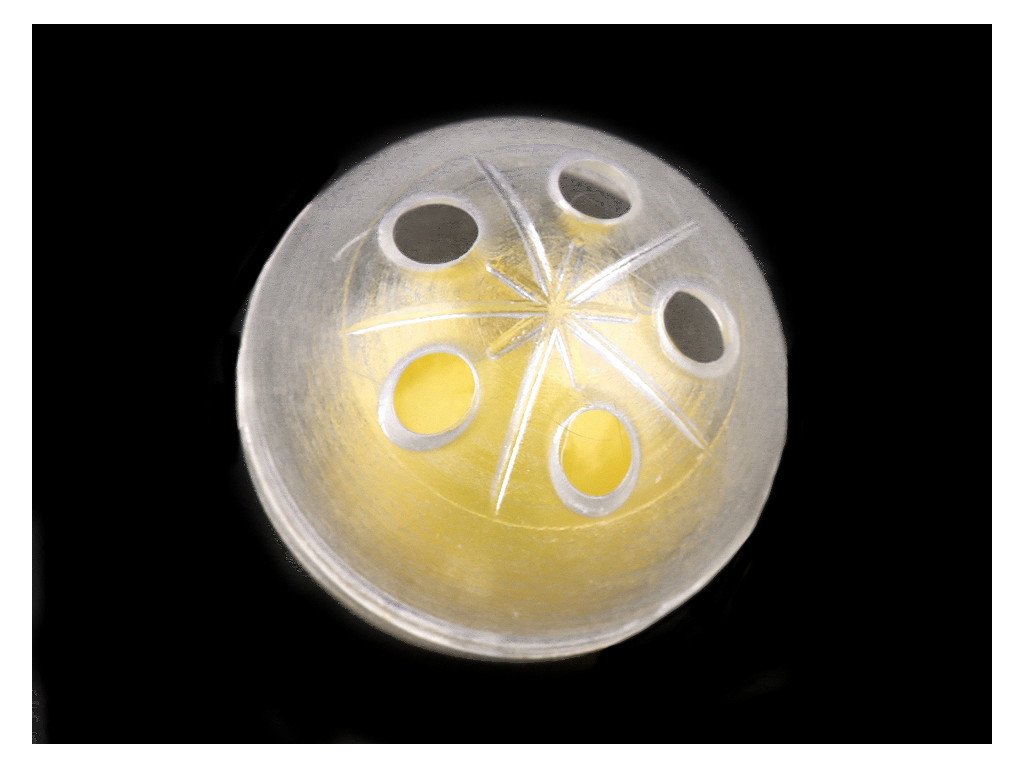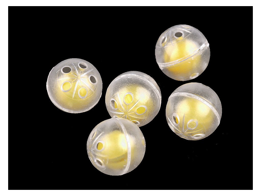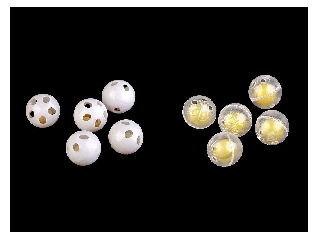 Chrastítko má tvar kuličky, ve které jsou v sobě ještě další 2 kuličky, které vydávají rolnivý zvuk. Používá se do šitých, pletených i háčkovaných výrobků.