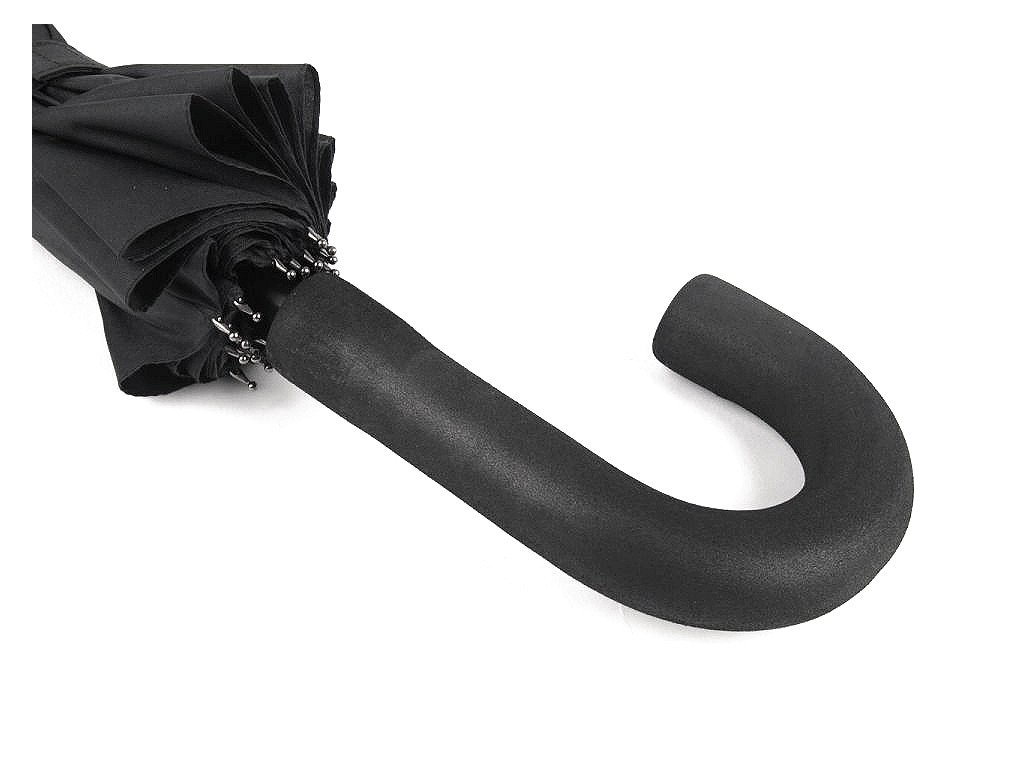 Klasická tyč je zakončená pevnou rukojetí. Rukojeť je potažená pěnovou gumou, pohodlně se drží v ruce. Velikou výhodou pěnové gumy je, že na dotek nestudí. Deštník má klasické zapínání na patentku.