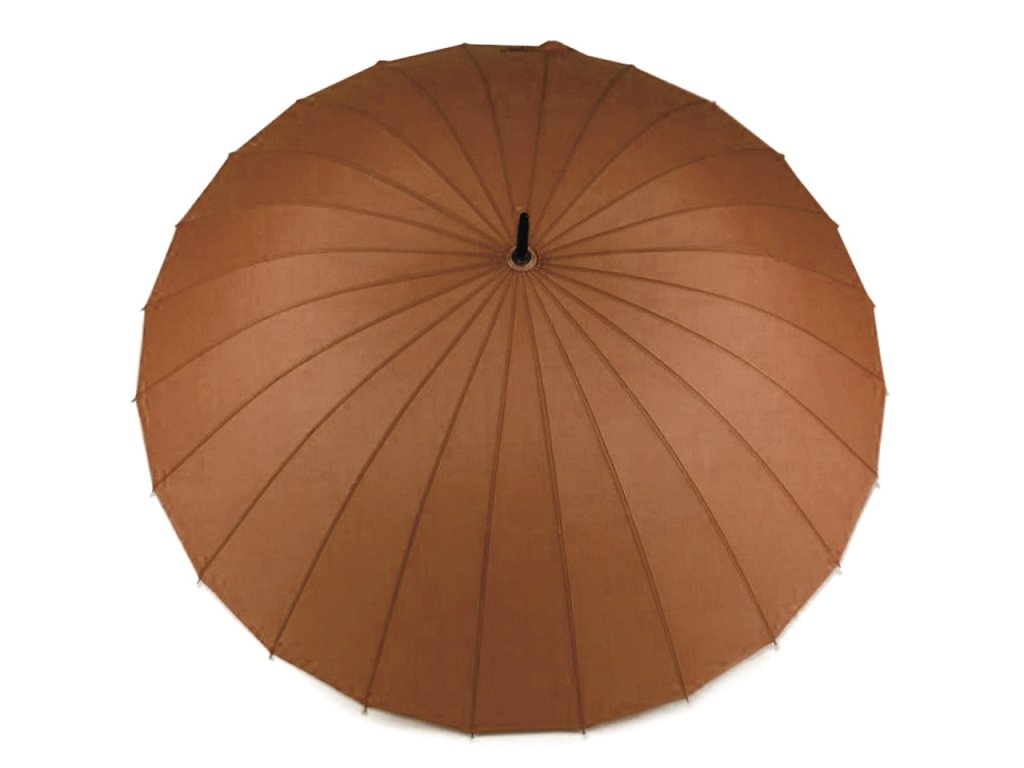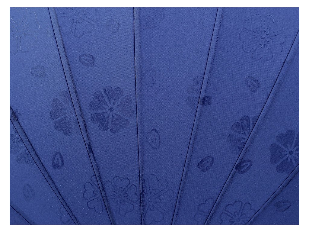Deštník je holový, má jednoduchý, ale přitom zajímavý design. Je rozdělený na 24 malých polí. Díky této konstrukci a kovových drátů je velice pevný, neohne se ani za největšího nečasu.