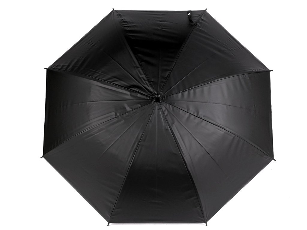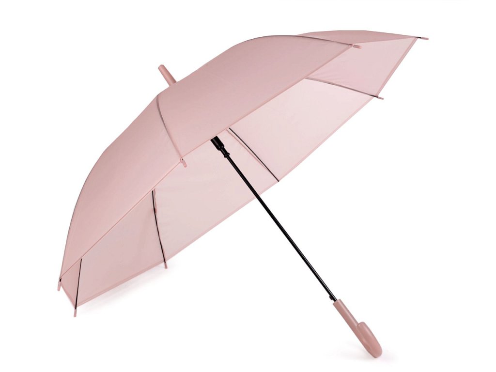 Průsvitný deštník je vystřelovací, konstrukci má z kovového drátu a pružných lamel, tvoří osm polí. Díky nim je velice pevný, neohne se ani za největšího nečasu. Klasická tyč je zakončená pevnou rukojetí.