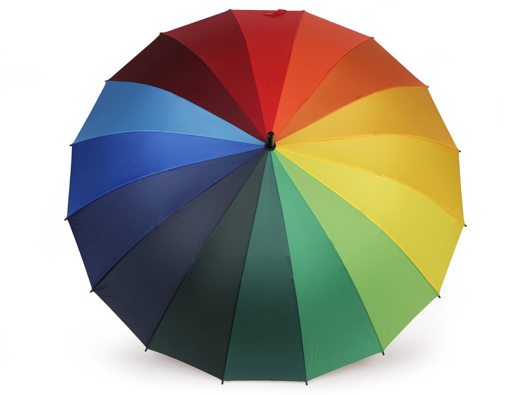 Luxusní vystřelovací deštník s duhou je díky velkému průměru vhodný jako deštník pro dva (rodinný deštník).
