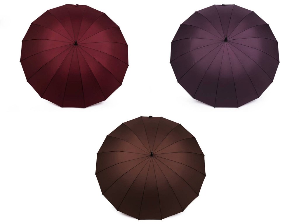 Velký luxusní deštník s průměrem 113 cm je vhodný jako deštník pro dva (rodinný deštník). Je vystřelovací, má klasickou tyč zakončenou pevnou dřevěnou rukojetí. Skládá se z 16 výsečí, díky kterým se deštník řadí mezi špičkové kousky. V kombinaci s pružnými lamelami a také díky velké hloubce má deštník vysokou pevnost a stabilitu. Je vybavený UV filtrem, chrání před slunečním zářením.