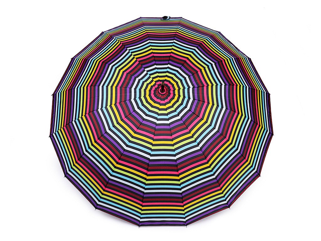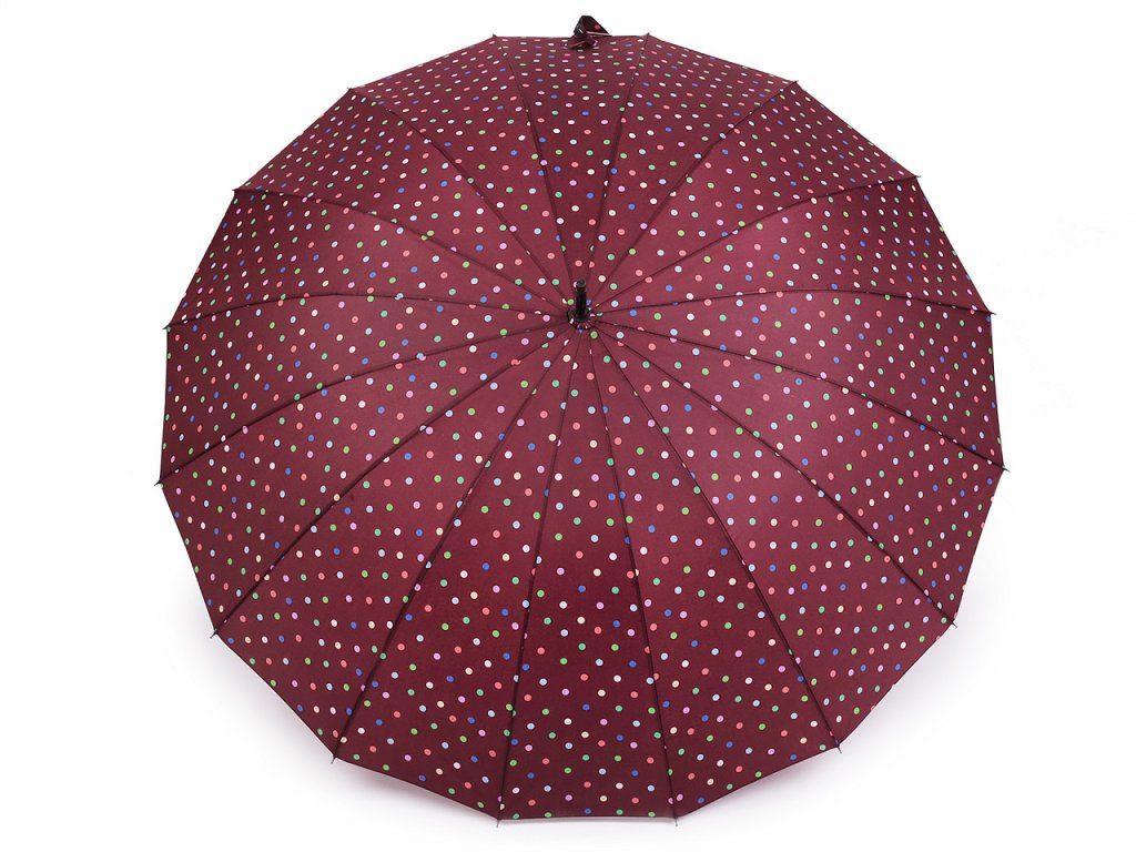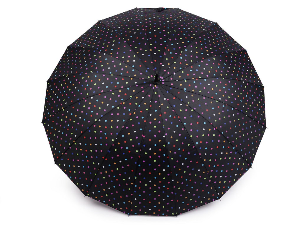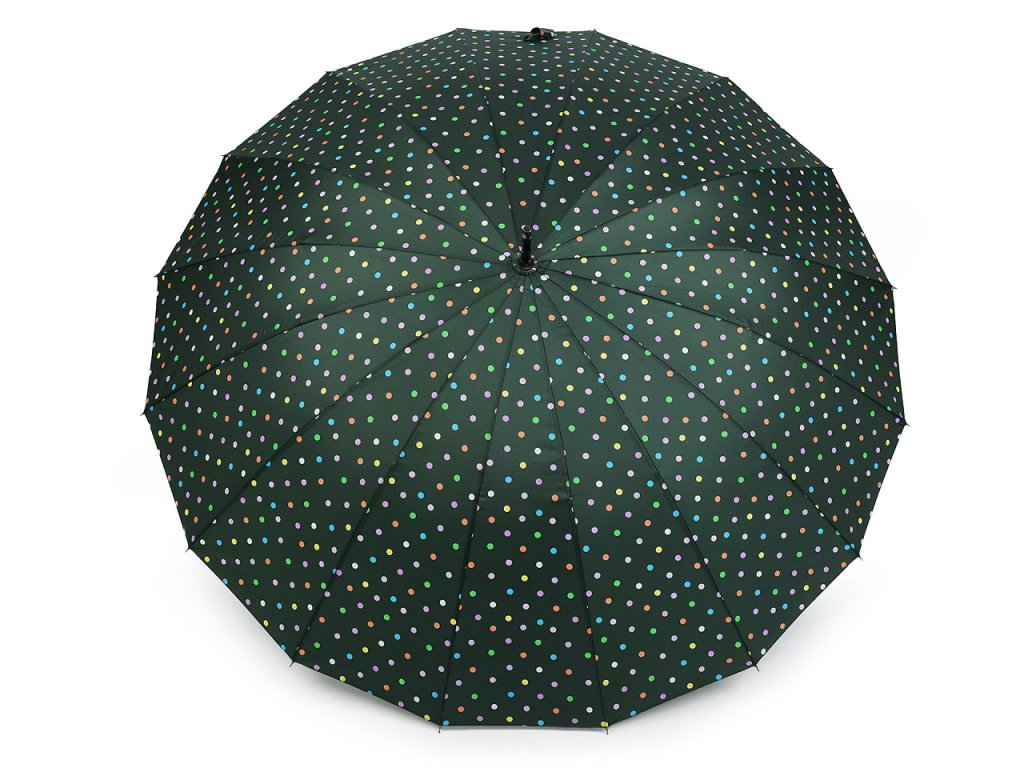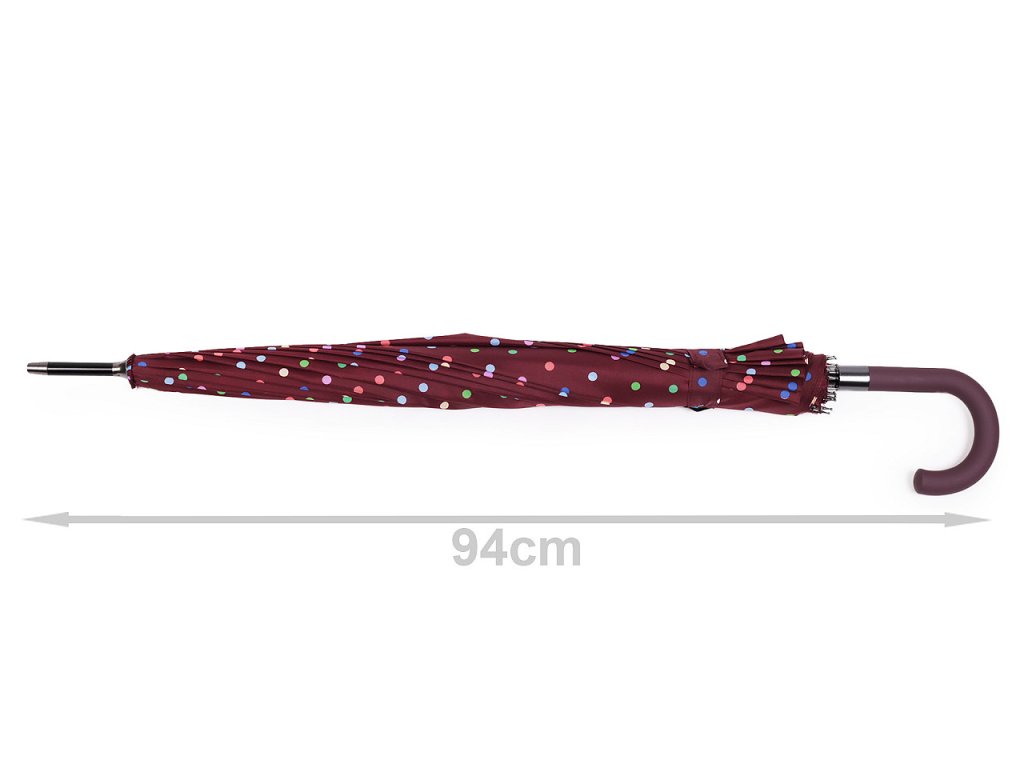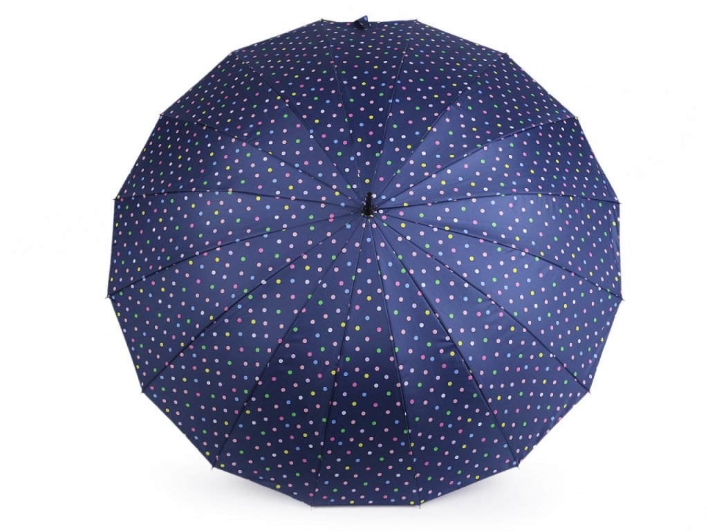 Velký vystřelovací deštník s puntíky vás spolehlivě ochrání před nepřízní počasí. Skládá se z 16 polí. Díky jeho velkému průměru 117 cm je vhodný jako deštník pro dva (rodinný deštník).
