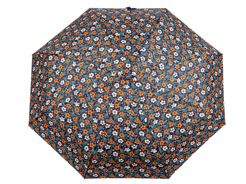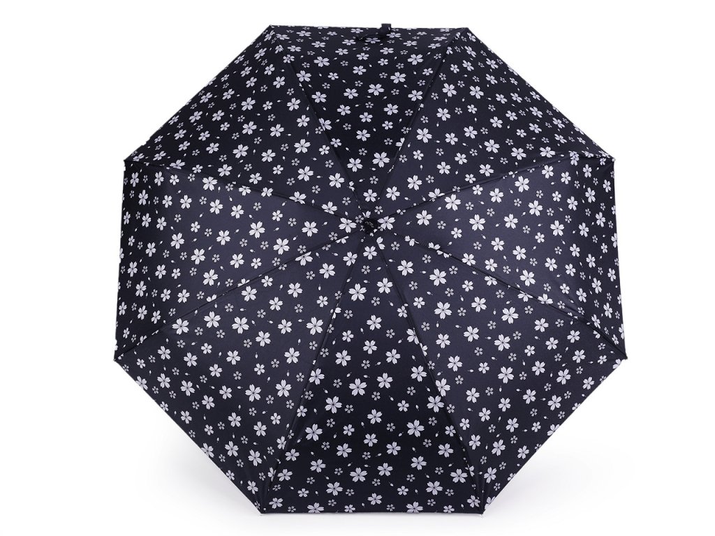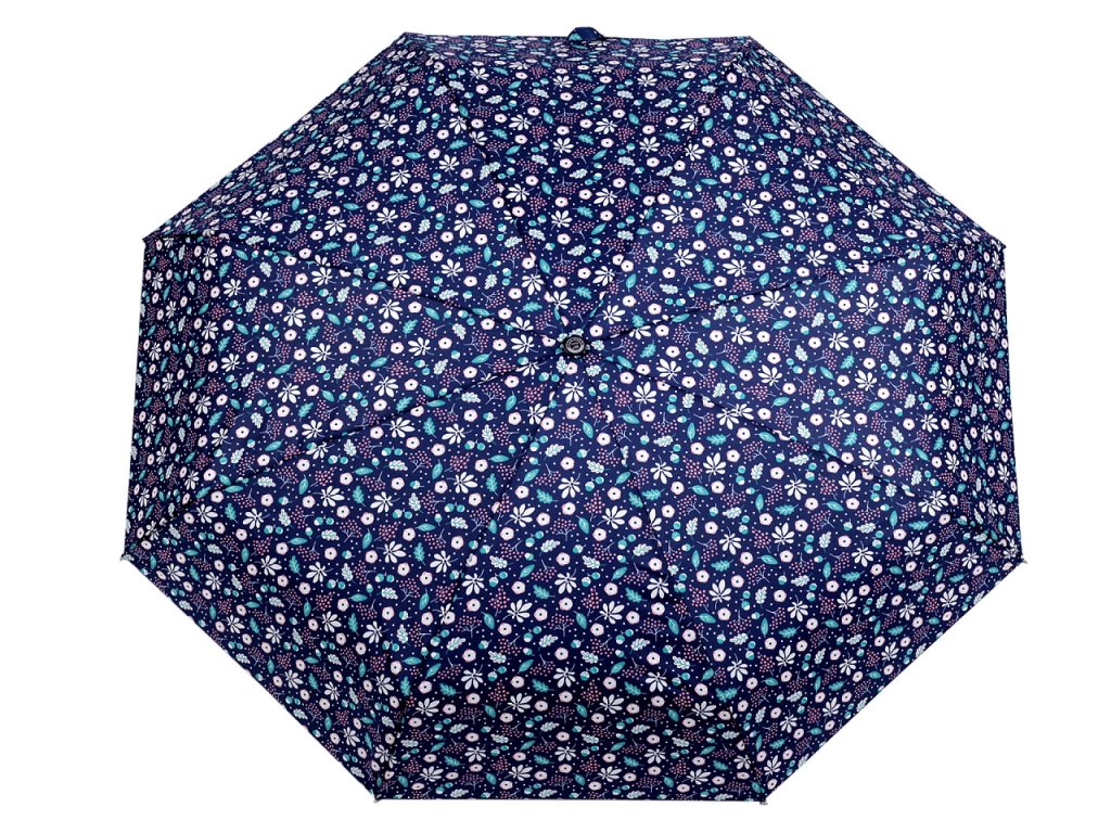Dámský skládací deštník s květy. Díky hliníkové konstrukci a malé velikosti je lehký a skladný, pohodlně se vám vejde do kabelky. Obstojí i v silném větru, kovová konstrukce kombinovaná s pružnými lamelami zajišťuje vysokou pevnost a stabilitu. Deštník je složený z osmi polí. UV filtr vás ochrání před slunečním zářením. Rukojeť deštníku je plastová, opatřená poutkem. Součástí deštníku je ochranný obal.