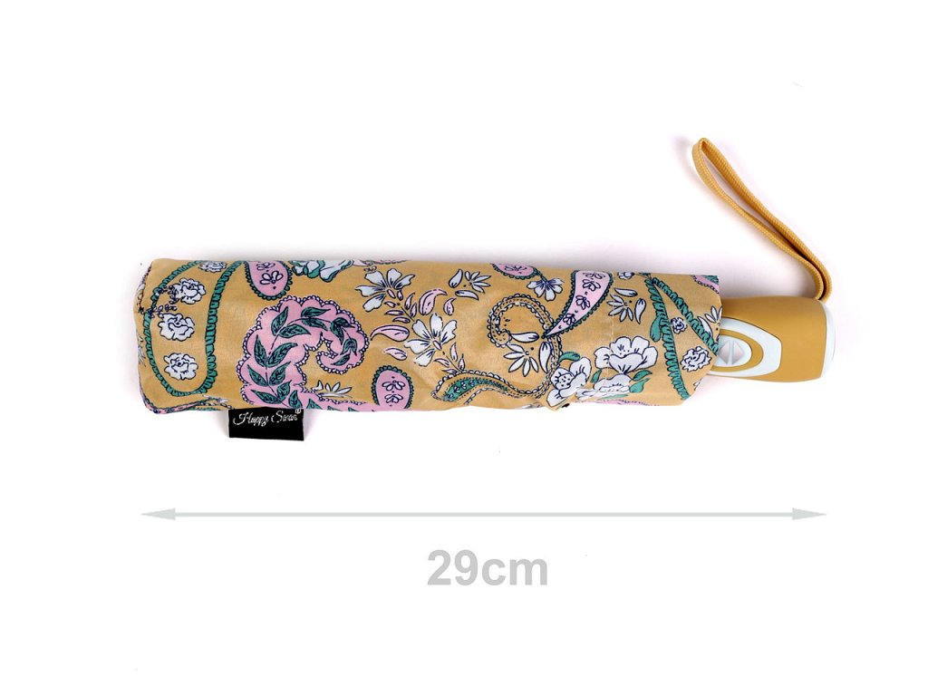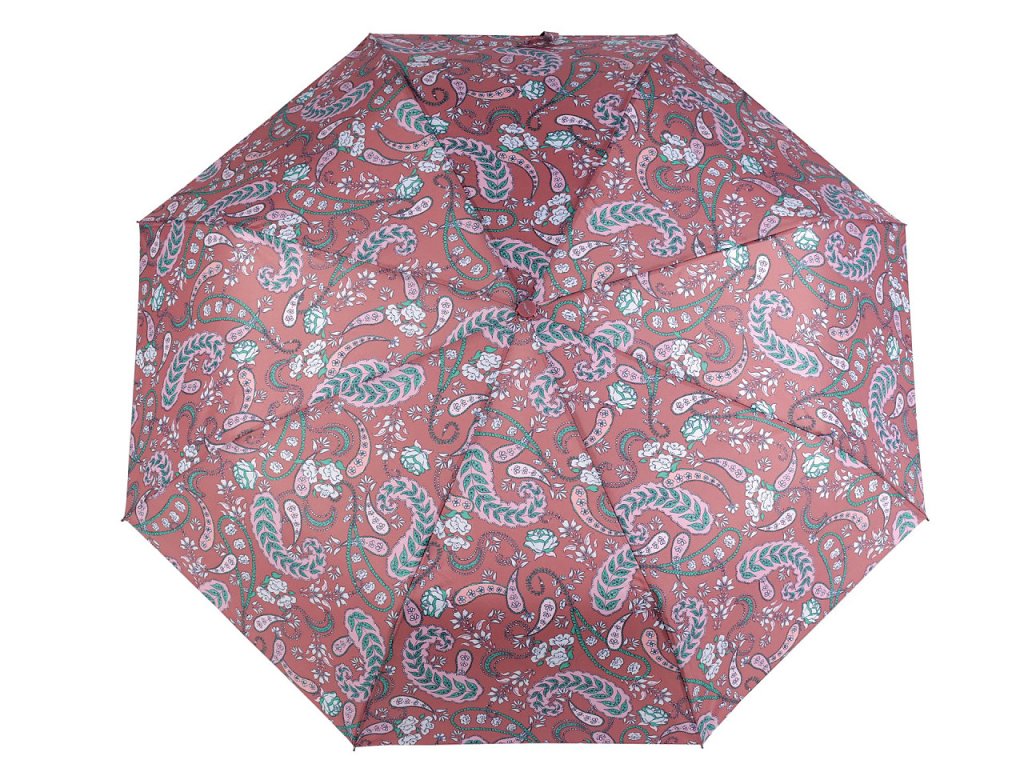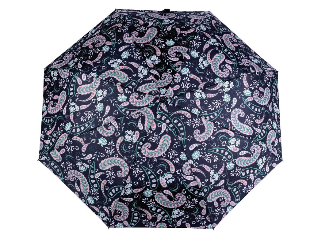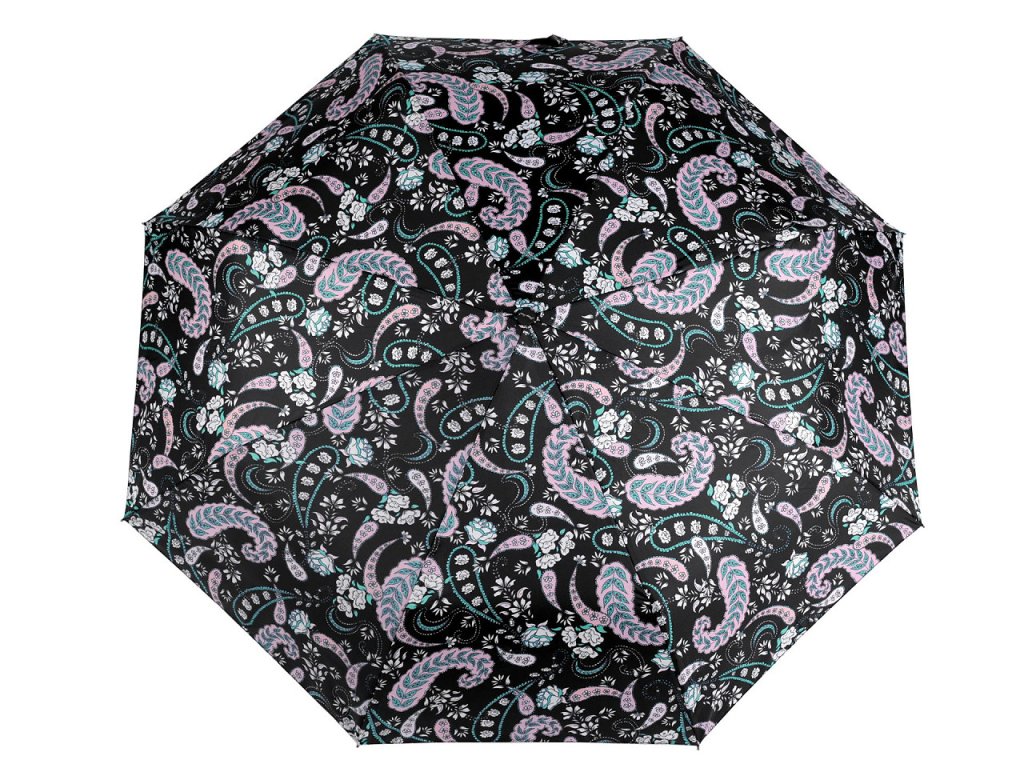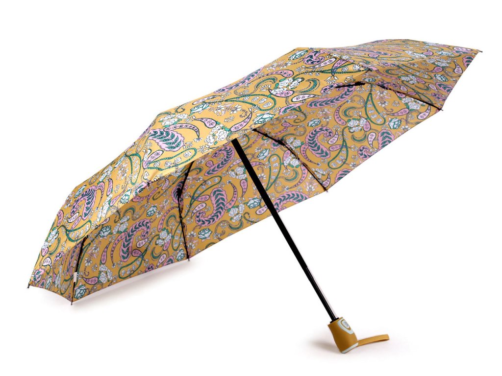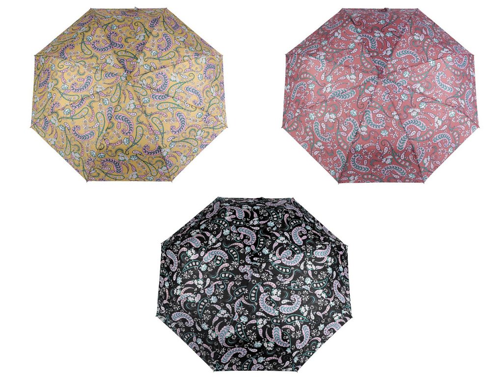 Plně automatický skládací deštník je vyrobený z kvalitního materiálu. Na potahu deštníku je poutavý paisley motiv. Deštník má vystřelovací / sestřelovací mechanizmus. Rozevře i zavře se stisknutím tlačítka se šipkou nahoru nebo dolů. Rukojeť deštníku je plastová, opatřená poutkem. Konstrukce deštníku se skládá z osmi polí. Součástí deštníku je ochranný obal.