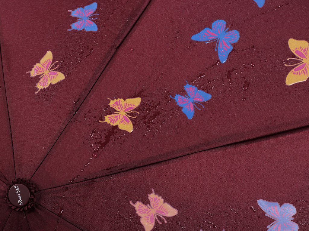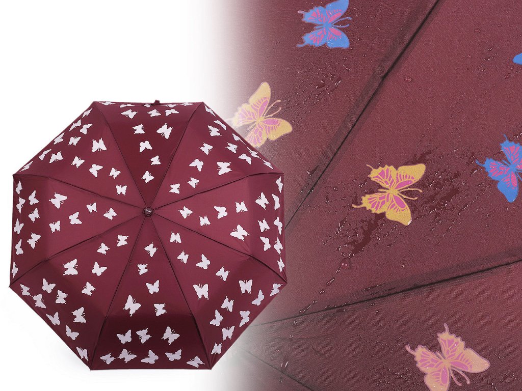 Kouzelný dámský skládací deštník mění barvy motýlů při kontaktu s vodou. Doma se vám bude deštník jevit jako nenápadný a jen co zaprší, začně hýřit barvami.