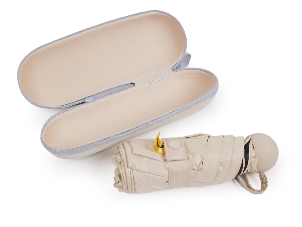 Skládací mini deštník je díky malé velikosti lehký a skladný, pohodlně se vám vejde do kabelky. Navíc má elegantní pouzdro na zip, do kterého deštník rychle zabalíte.