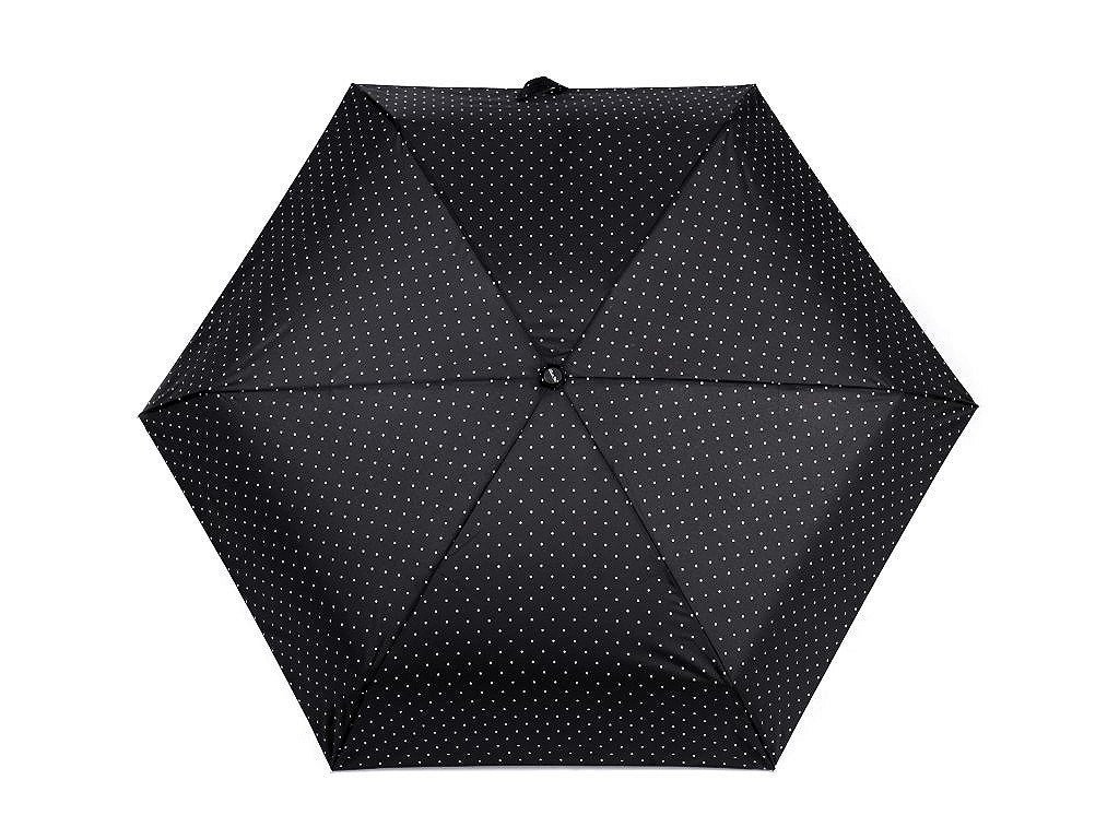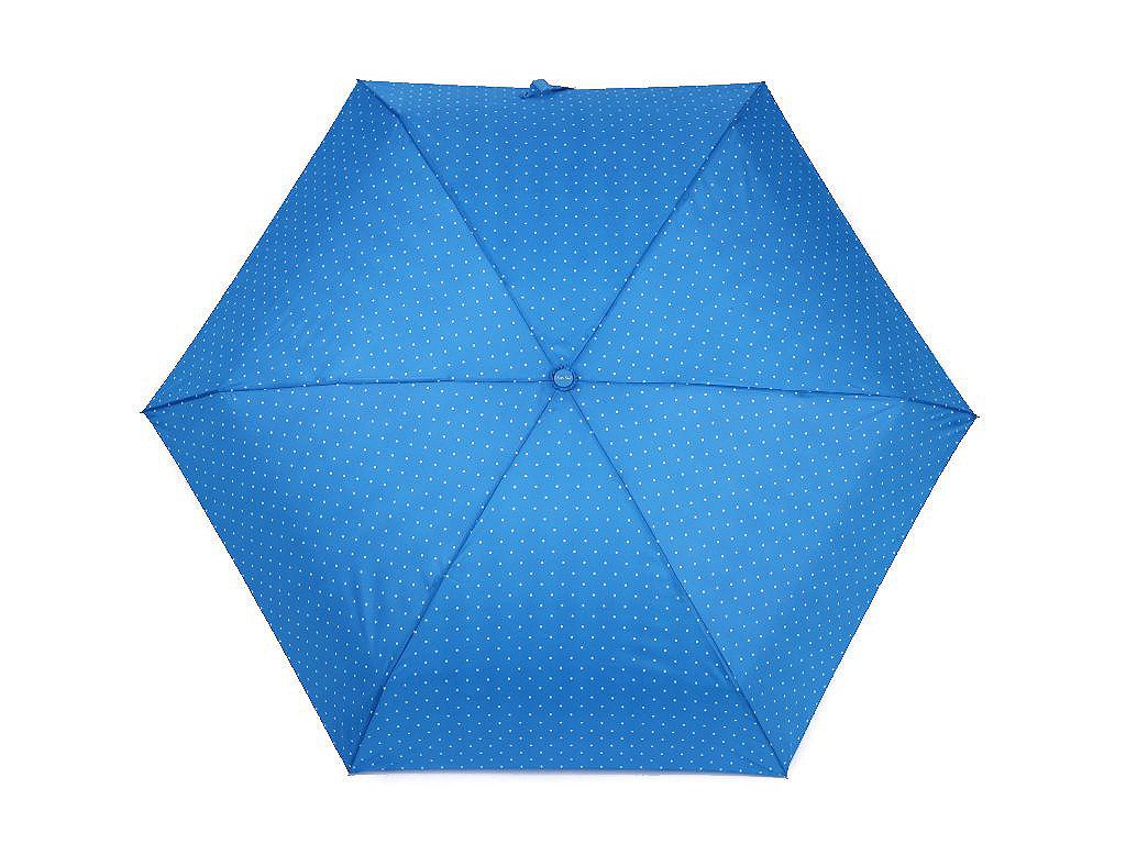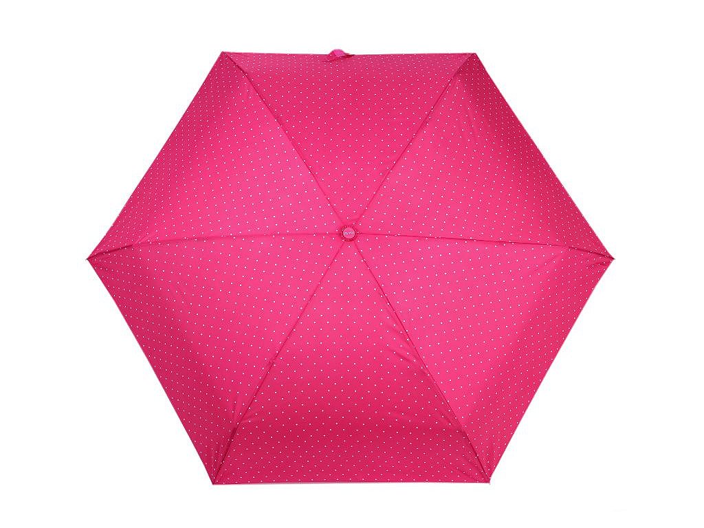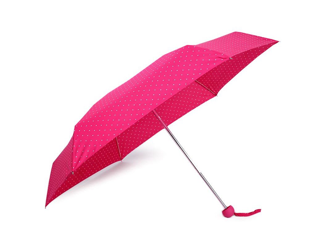 Skládací deštník s puntíky je díky hliníkové konstrukci a malé velikosti lehký a skladný, pohodlně se vám vejde do kabelky.