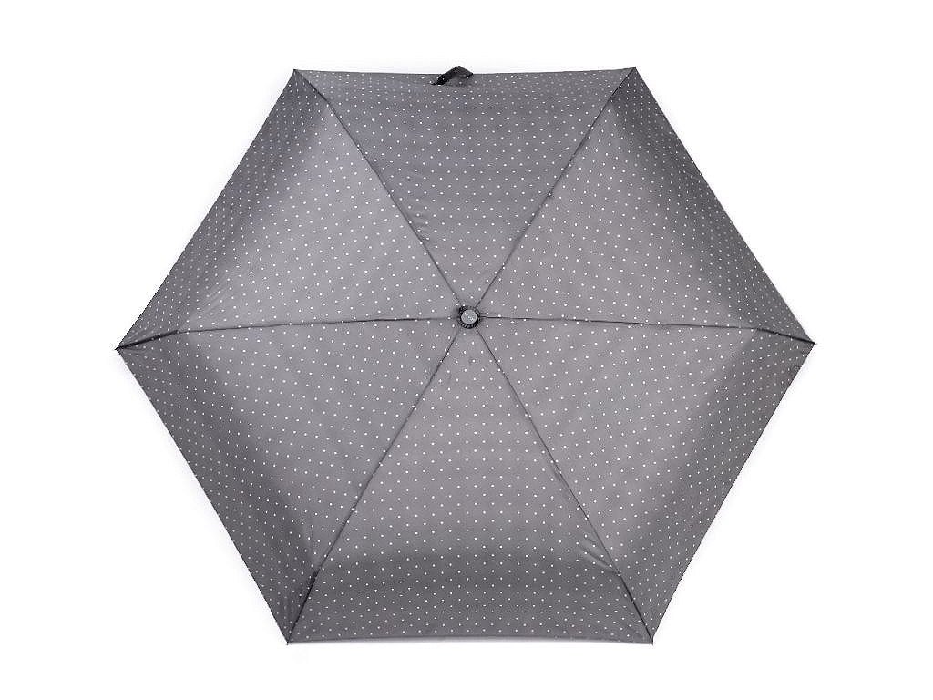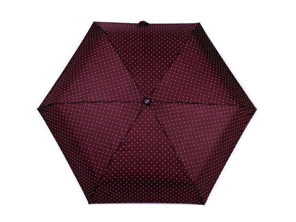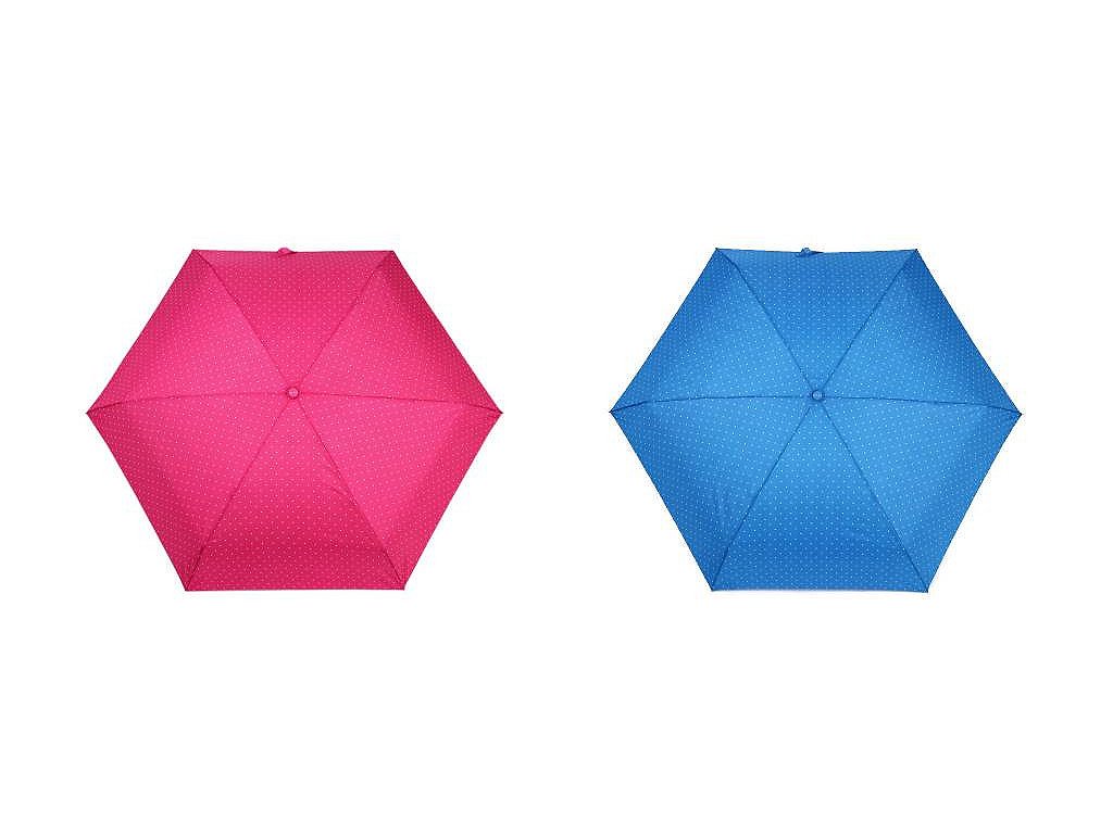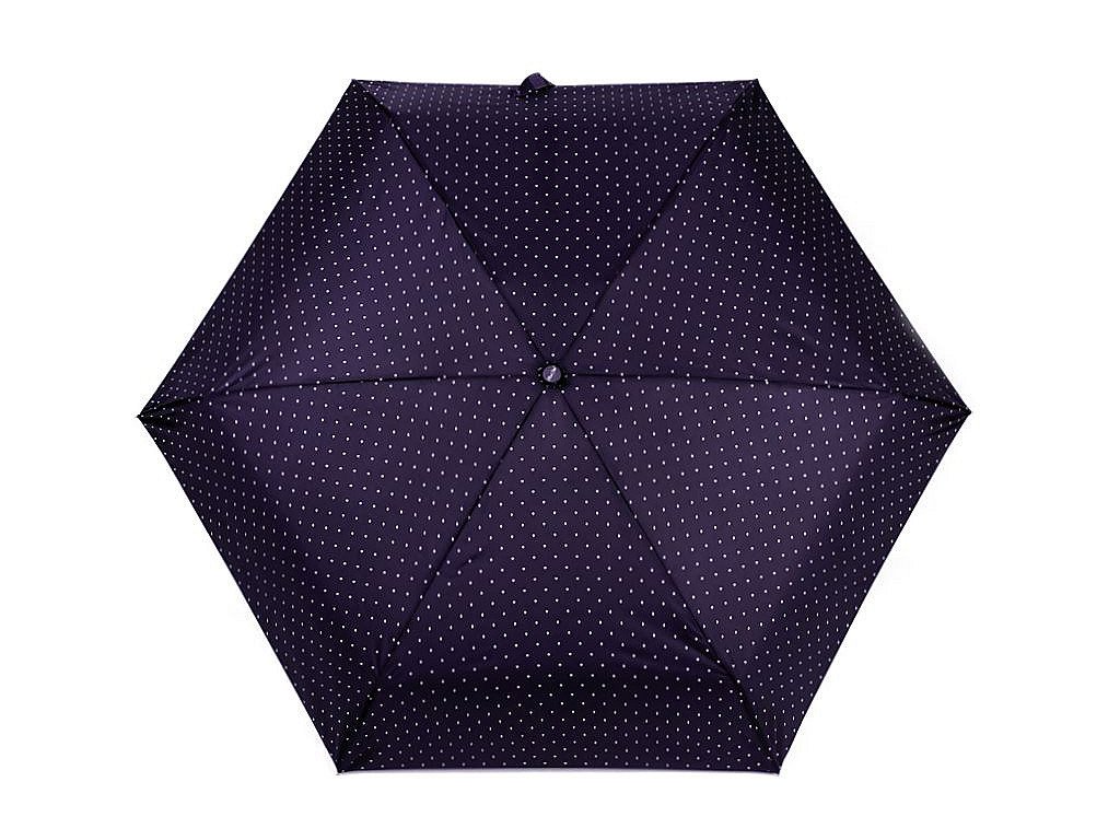 Skládací deštník s puntíky je díky hliníkové konstrukci a malé velikosti lehký a skladný, pohodlně se vám vejde do kabelky.