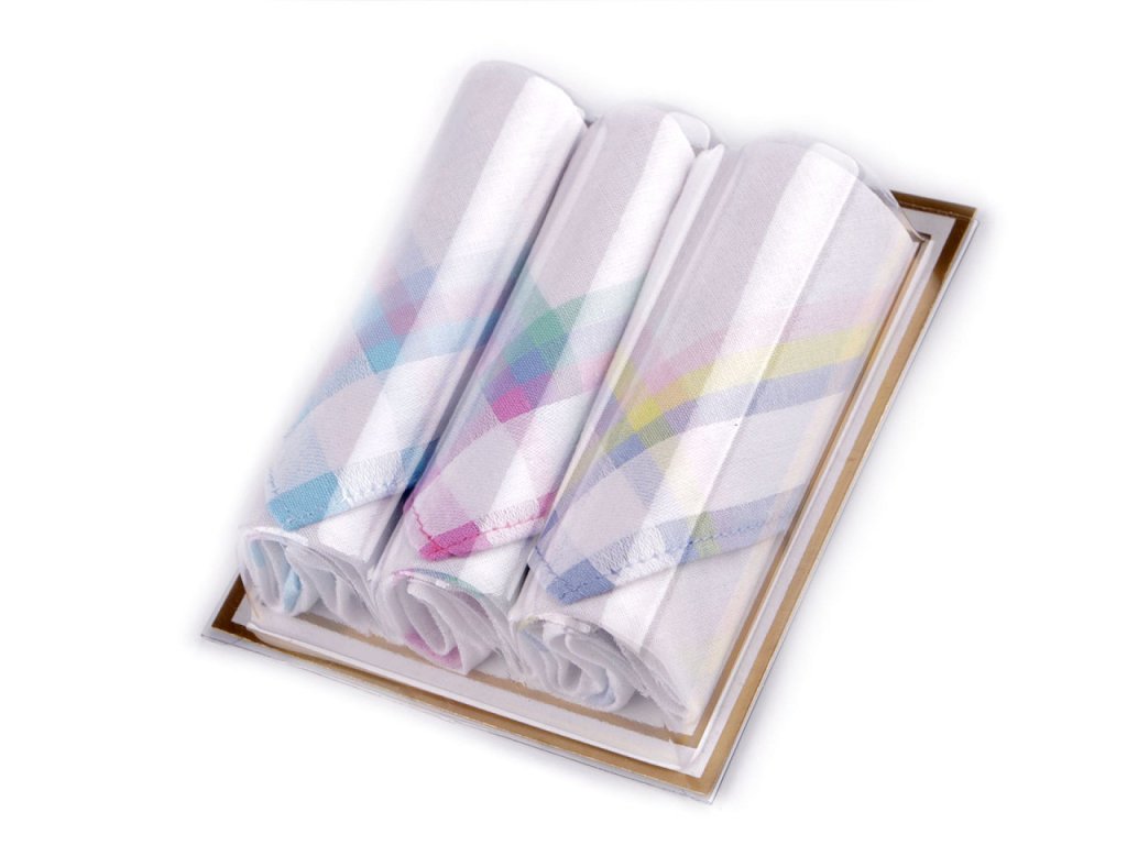 Sada kapesníků je univerzálním a praktickým dárkem. Potřebujete-li malý dárek, který udělá radost, tato sada je tou pravou volbou. Kapesníky jsou zabalené v průhledné tvarované krabičce. V jedné krabičce jsou 3 čtvercové kapesníky.