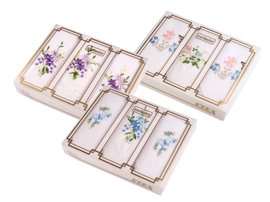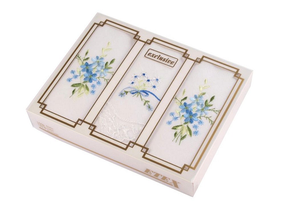 Sada kvalitních bavlněných kapesníků s romantickou výšivkou s motivem květů. Posloužit mohou nejen při nachlazení, ale i jako dekorační kapesník. Ideální dárek pro všechny nostalgické duše.V jednom balení naleznete 3 ks. Čtvercový tvar o rozměru 27 x 27 cm.