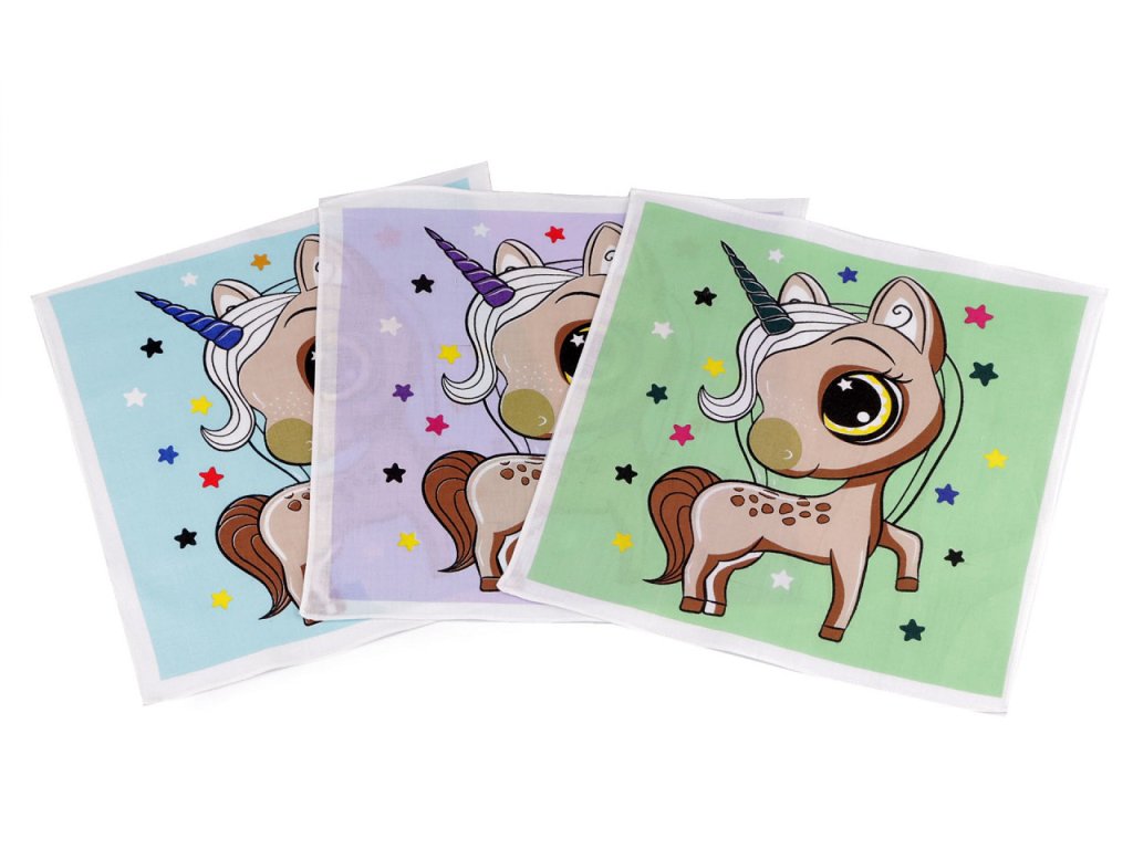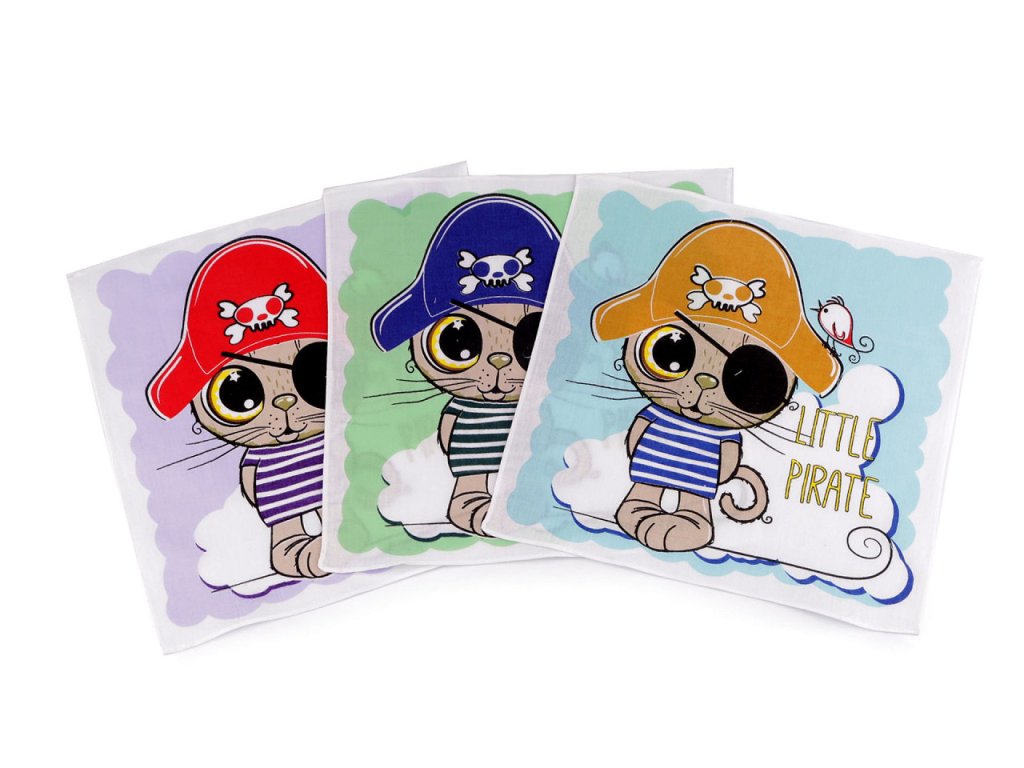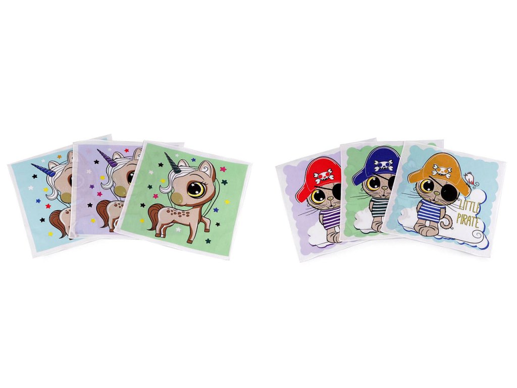 Tradiční látkové kapesníky s veselými dětskými motivy. Díky příjemnému materiálu je kapesník jemný k dětské pokožce, jeho kvalitní zpracování zaručuje vysokou odolnost a dlouhou životnost. Dětské obrázkové kapesníky jsou ideální pro použití ve školce, školách, na výletech i při rodinných akcích. Jedno balení obsahuje 6 kusů kapesníků.