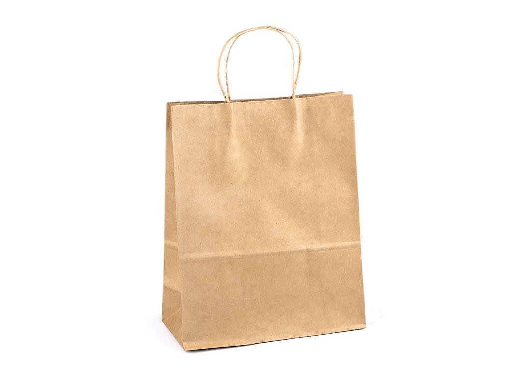 Jednoduchá dárková taška v přírodní barvě je kvalitní, vyrobená z pevnějšího papíru. Ucha jsou kroucená, také vyrobená z papíru. Je vhodná nejen k darování dárků, ale i k dozdobení. Můžete ji pomalovat nebo na ni nalepit např. flitry, glitry a různé ozdoby na scrapbooking. Taška je vhodná i k firemním účelům, může se potisknout.