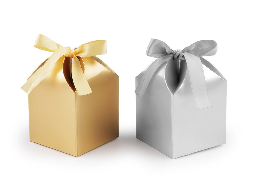 Metalická krabička se stuhou má poutavé zavírání, potěší každého obdarovaného. Můžete ji použít na malé dárky, stuha je součástí balení.