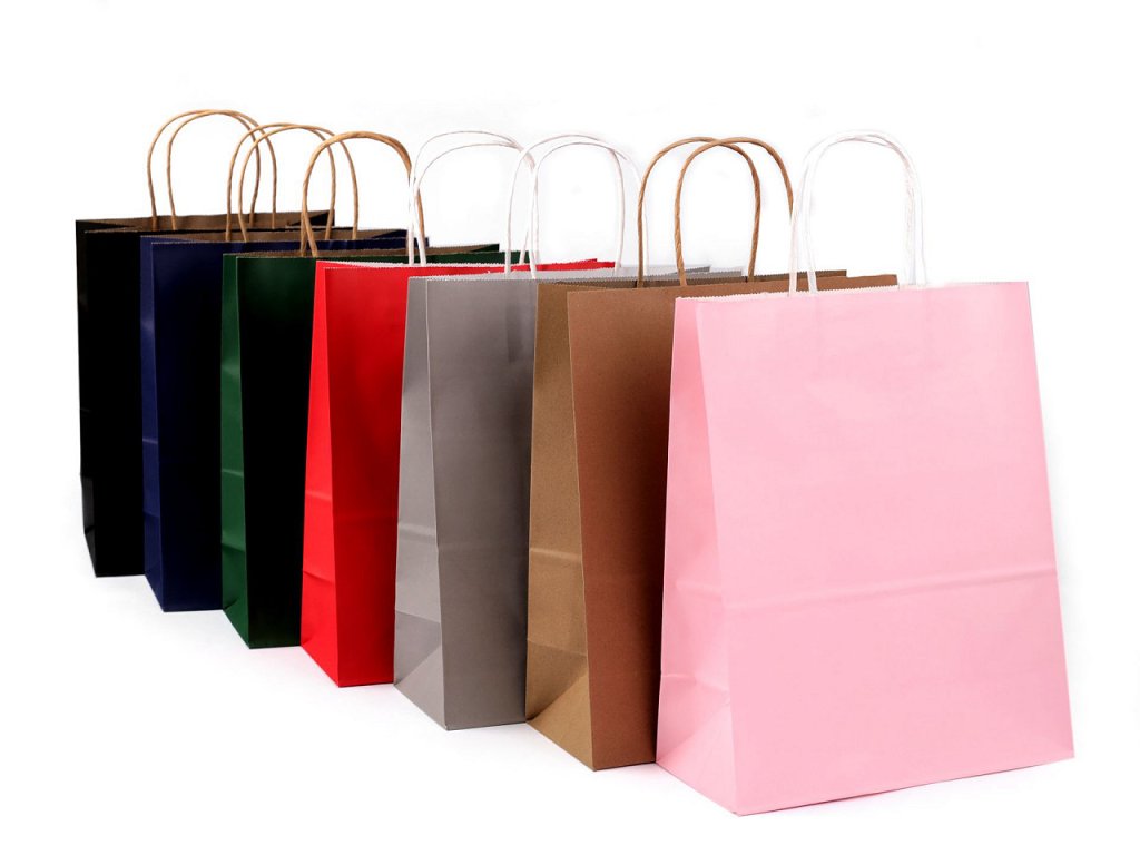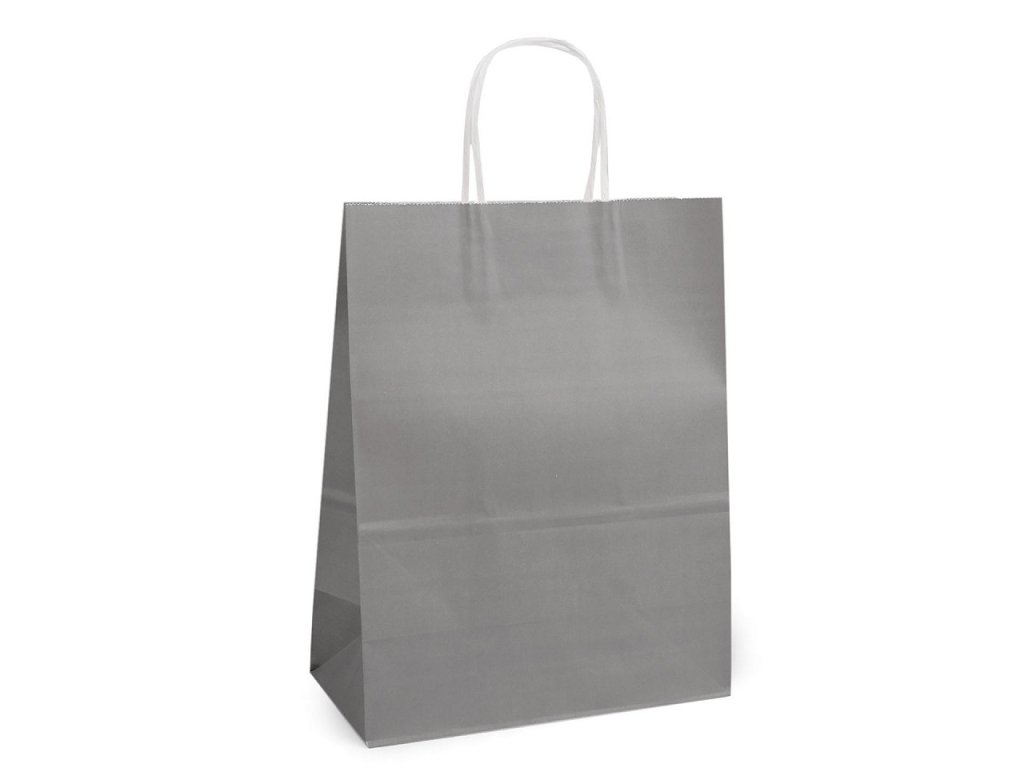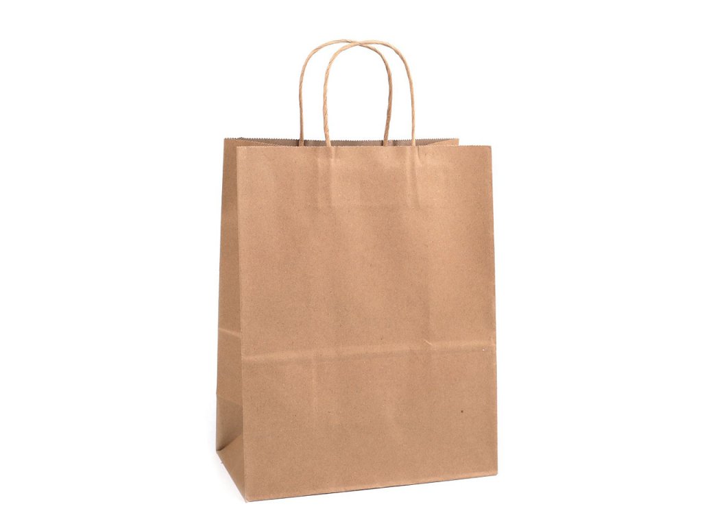 Středně velká papírová taška vám pomůže rychle zabalit dárek nebo zboží pro vaše zákazníky. Je vyrobená z pevného papíru. Ucho tašky je z krouceného papírového provázku.