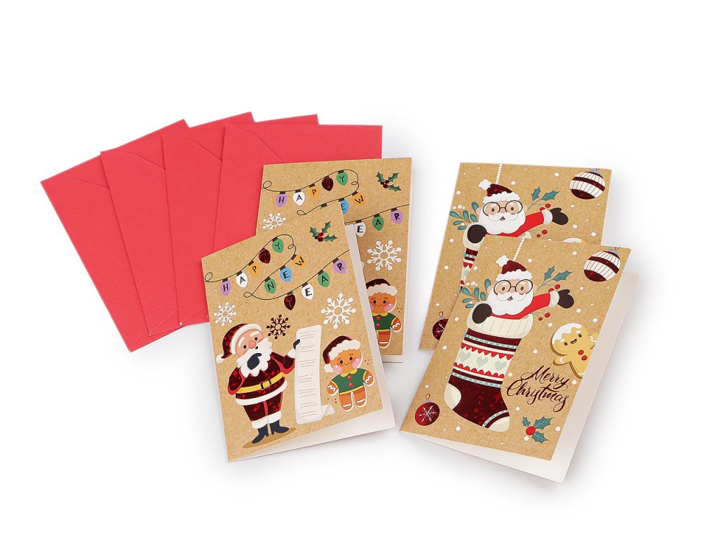 Set mini vánočních přání s obálkami je ideální volbou pro ty, kteří chtějí obdarovat své blízké osobním vzkazem. Design přání je veselý, s tradičními vánočními motivy. Potisk je v detailech doplněný metalickou fólií, ve které se pod určitým úhlem třpytí hvězdičky. Přání je rozevírací, uvnitř bez textu. Dárek doplněný tímto přáním bude působit luxusně, je ideální pro osobní vzkazy plné lásky a přání do nového roku. Navíc díky jejich kompaktní velikosti jsou snadno přenosná a vejdou se do každé kabelky či tašky.