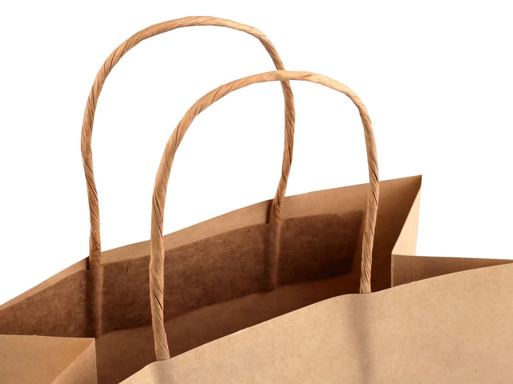 Papírovou tašku s kroucenými uchy zdobí na jedné straně logo Stoklasa. Je kvalitní, vyrobená z pevnějšího papíru.