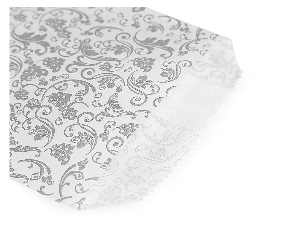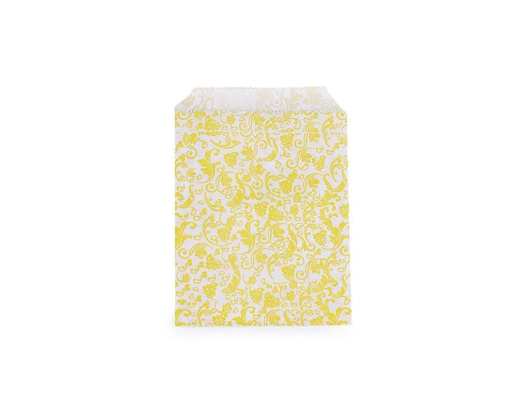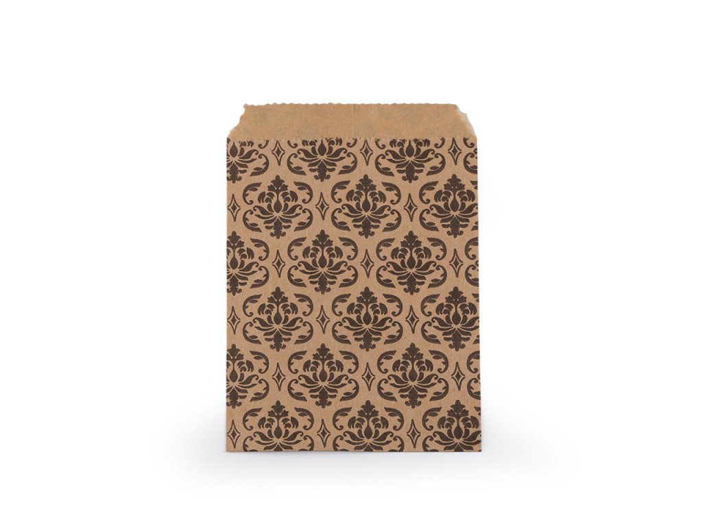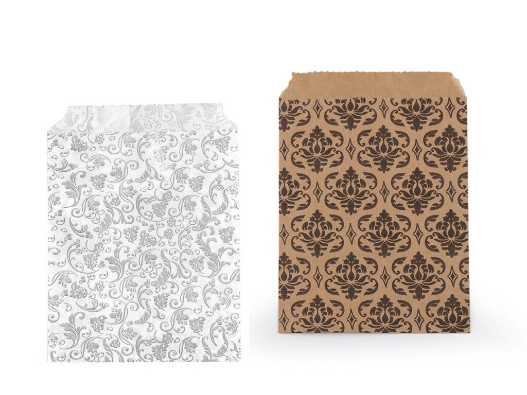 Papírový sáček využijete k balení drobných dárků nebo zboží v obchodě, například bižuterie či korálků. Je ozdobený ornamenty. Sáček nemá lepicí lištu.