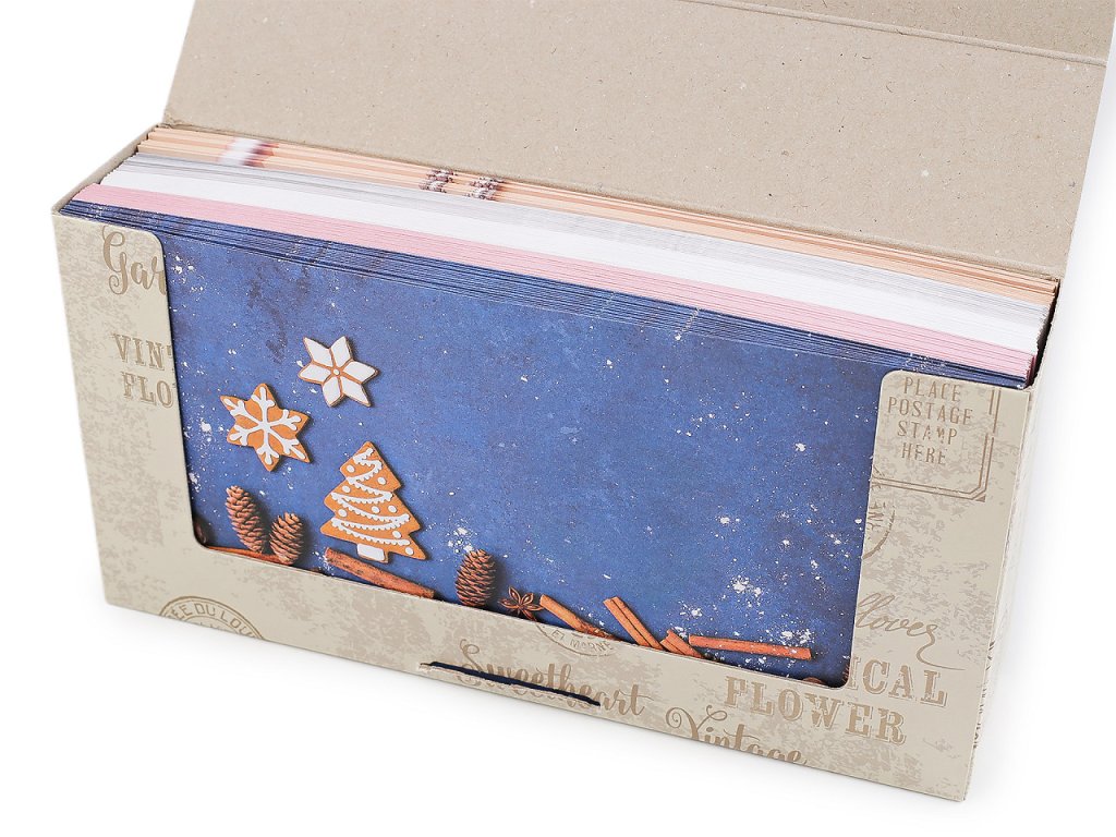 V originálním balení v krabičce najdete 5 motivů po 20 ks - celkem je tam tedy 100 ks obálek.