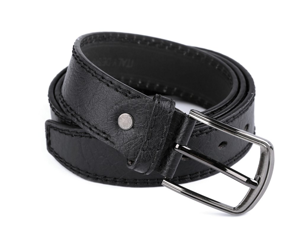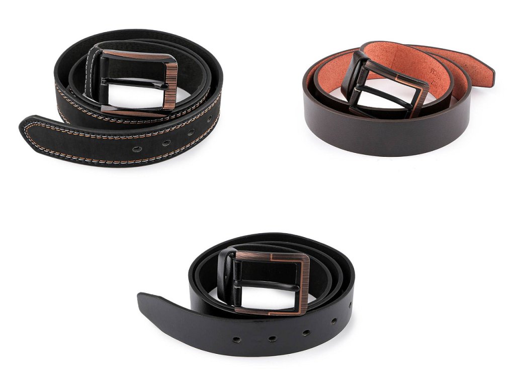 Kožený pásek se hodí k jakémukoliv oblečení. Horní strana má povrch s typickou koženou strukturou s polomatným vzhledem. Je vyrobený z mleté kůže, spona je černá s metalickým potiskem.