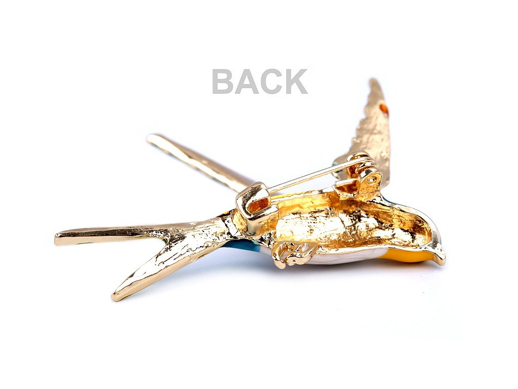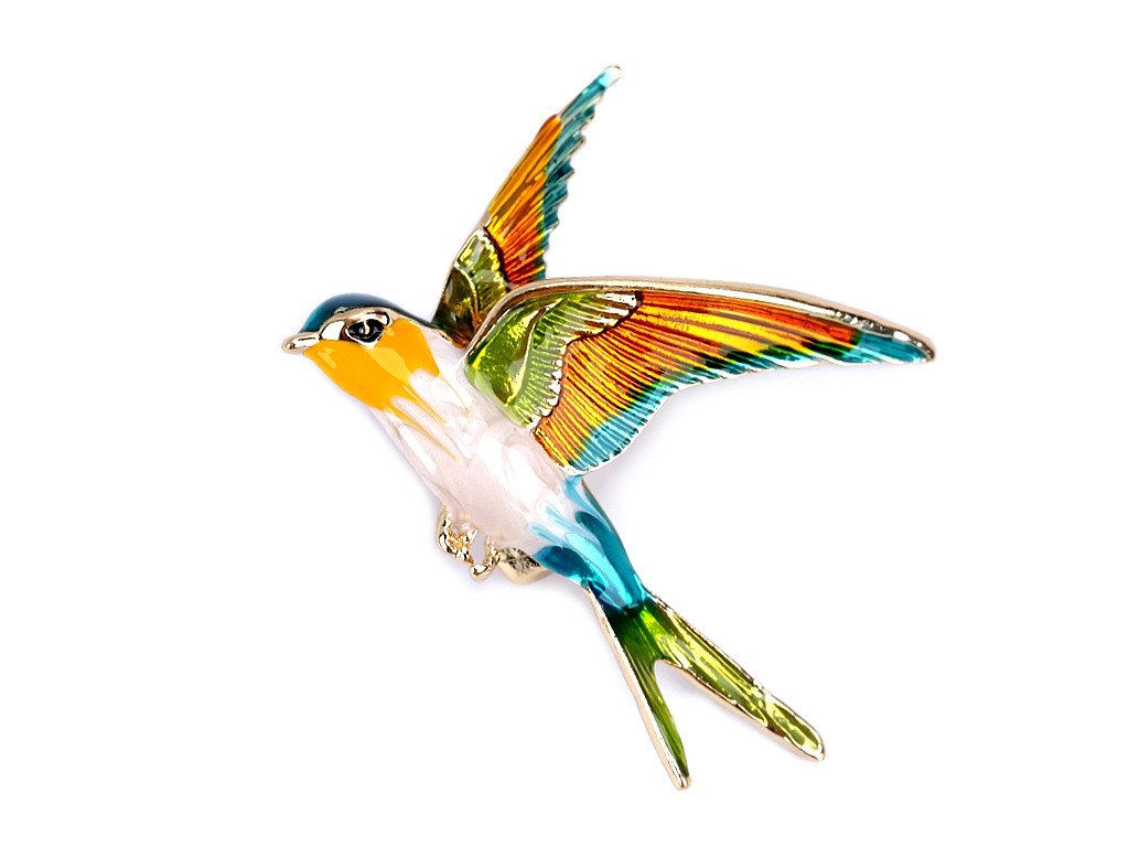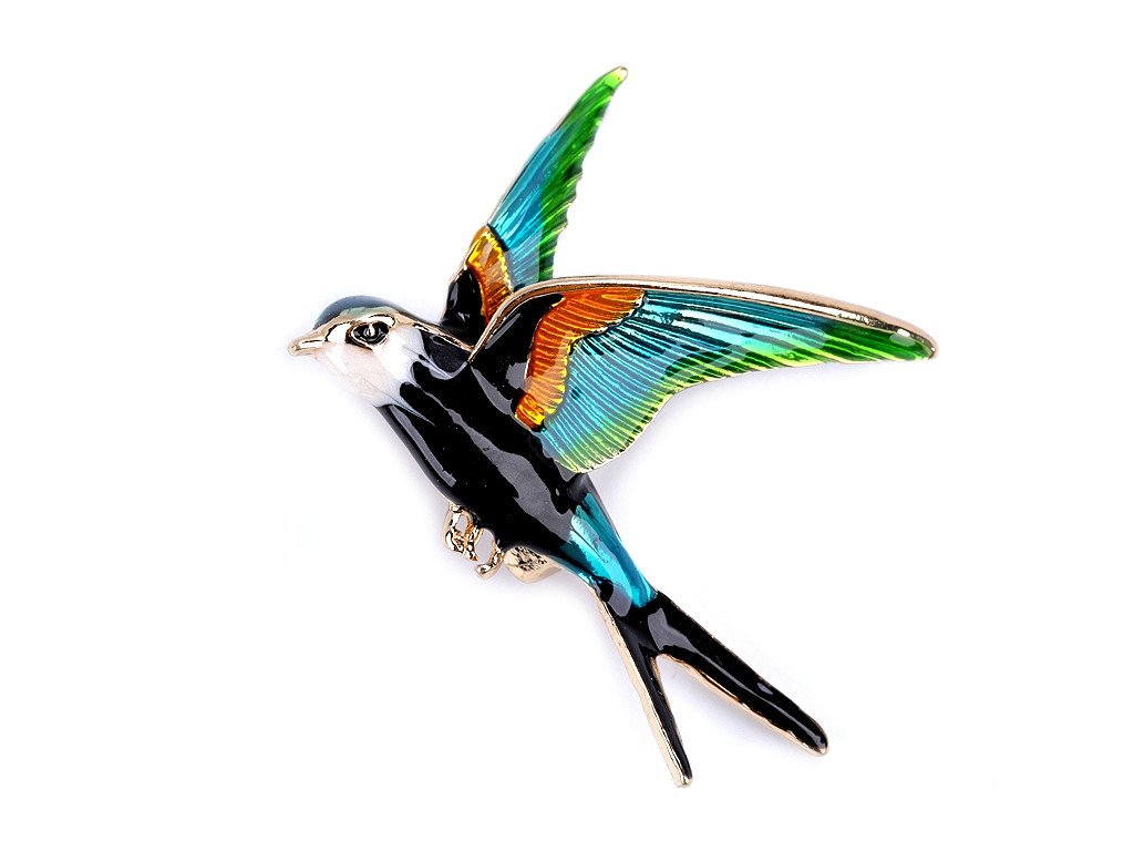 Brož ptáček s barevným smaltem vás uchvátí svou duhovou hrou barev. Je velice elegantní, můžete ji využít na běžné nošení i na společenské události - návštěvy divadel, oslavy apod. Z rubu má brož zavírací špendlík. Můžete ji nosit nejen na oděvech, hodí se i k ozdobení klobouků, tašky či sepnutí šátku.