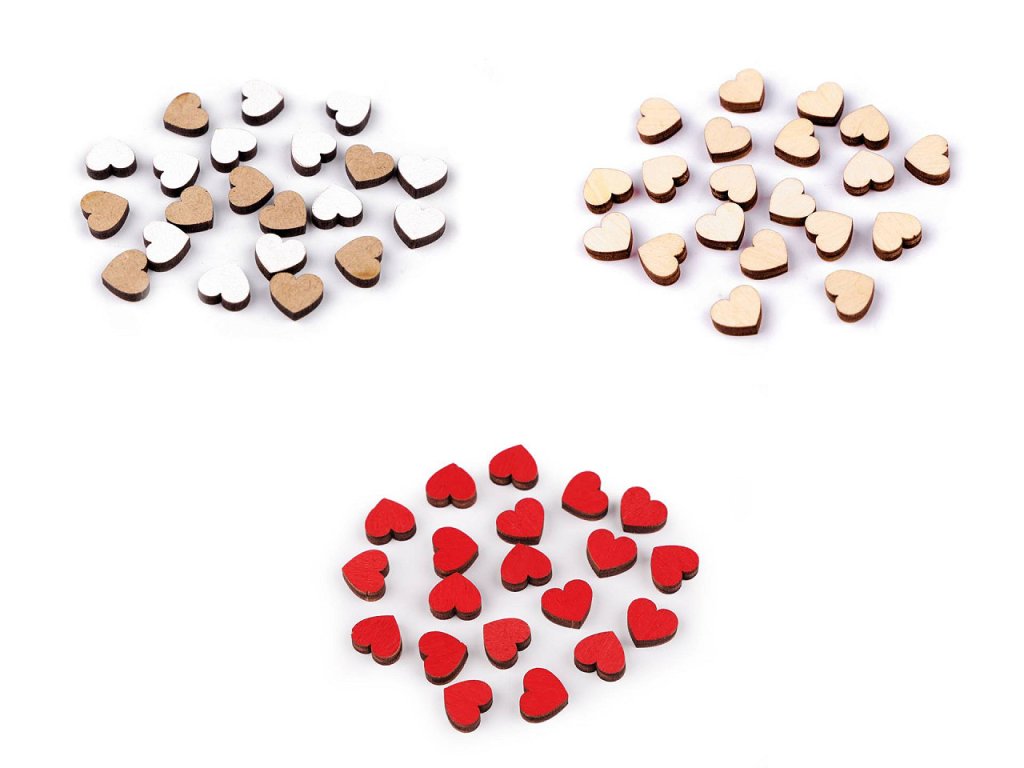 Mini dřevěná srdíčka využijete ve scrapbookingu k ozdobení přáníček, diářů, alb, jmenovek, krabiček apod. Vyniknou jako svatební i valentýnská dekorace. Jsou perfektní k výrobě voniček. Využijete je i na zdobení čelenek apod.