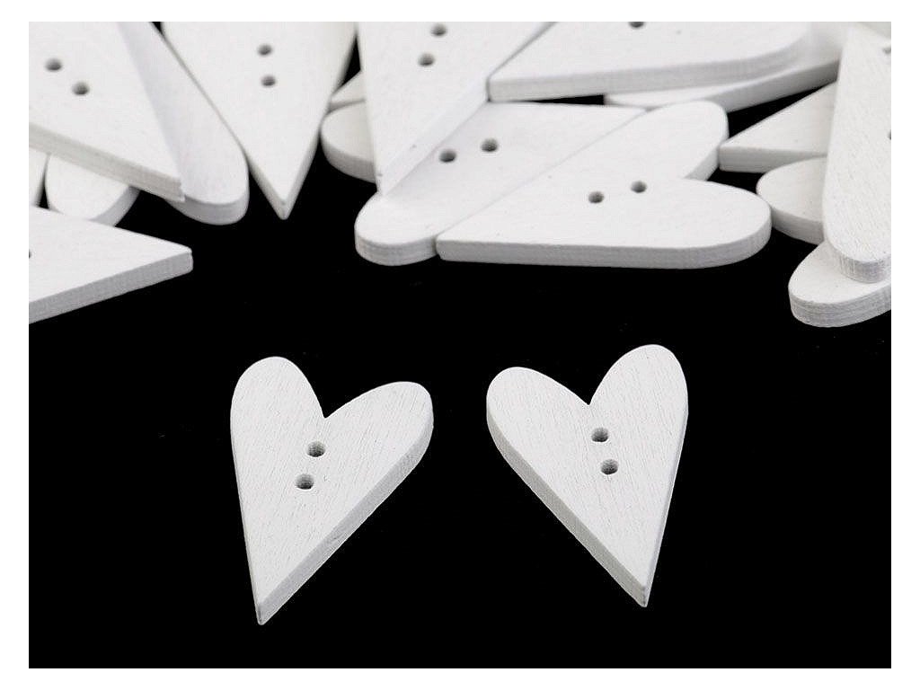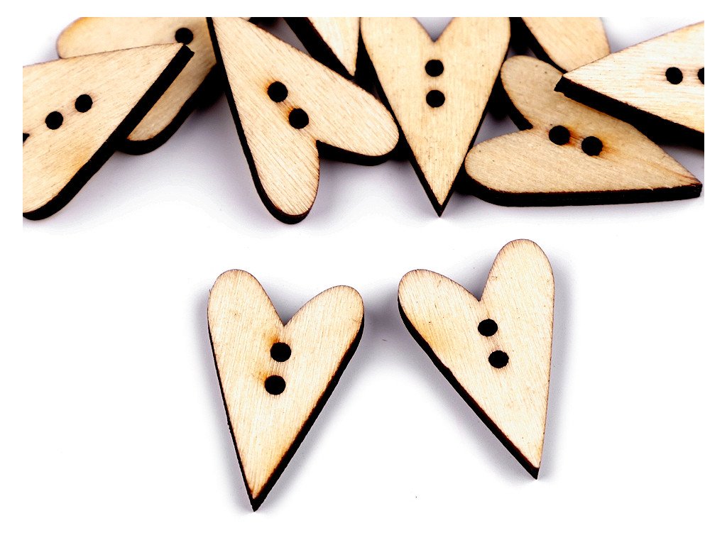 Dřevěné dekorační knoflíky ve tvaru srdce mají široké využití. Nejčastěji se s nimi můžete setkat ve scrapbookingu při zdobení rámečků, přáníček, jmenovek, pozvánek, deníků apod. Dále je můžete použít i na valentýnské a svatební dekorování.