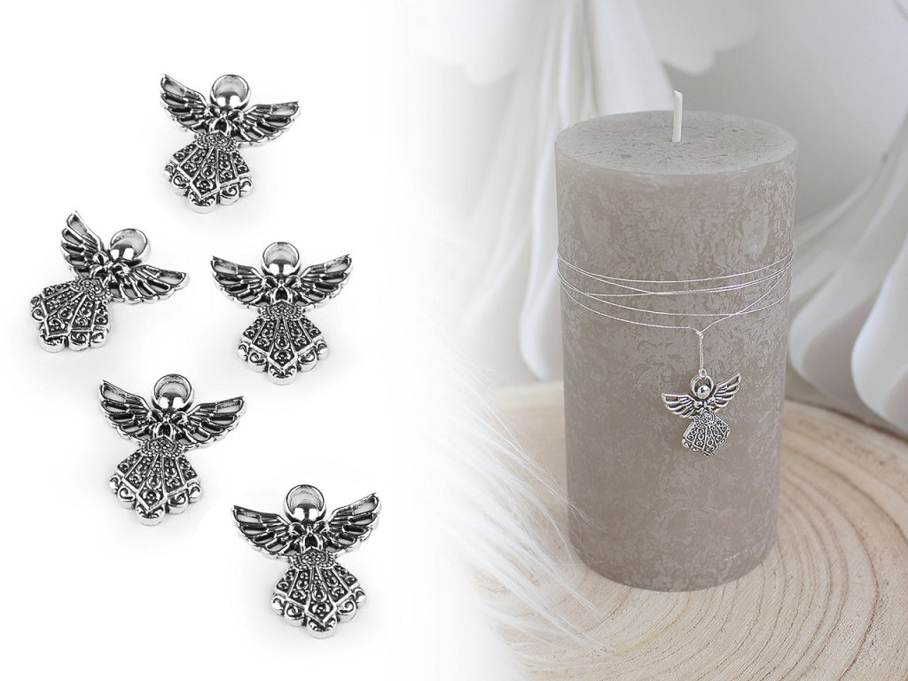 Přívěsek s andělem je jednostranný, precizně propracovaný. Svatozář můžete využít jako průvlek.